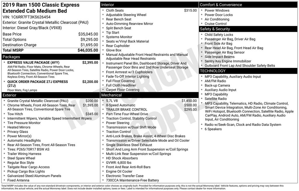 At our dealership, we are committed to providing our customers with the highest level of service and satisfaction. We invite you to come in and experience the 2019 Ram 1500 Classic Express for yourself. Our knowledgeable sales team is ready to answer any questions you may have and help you find the perfect vehicle to meet your needs.