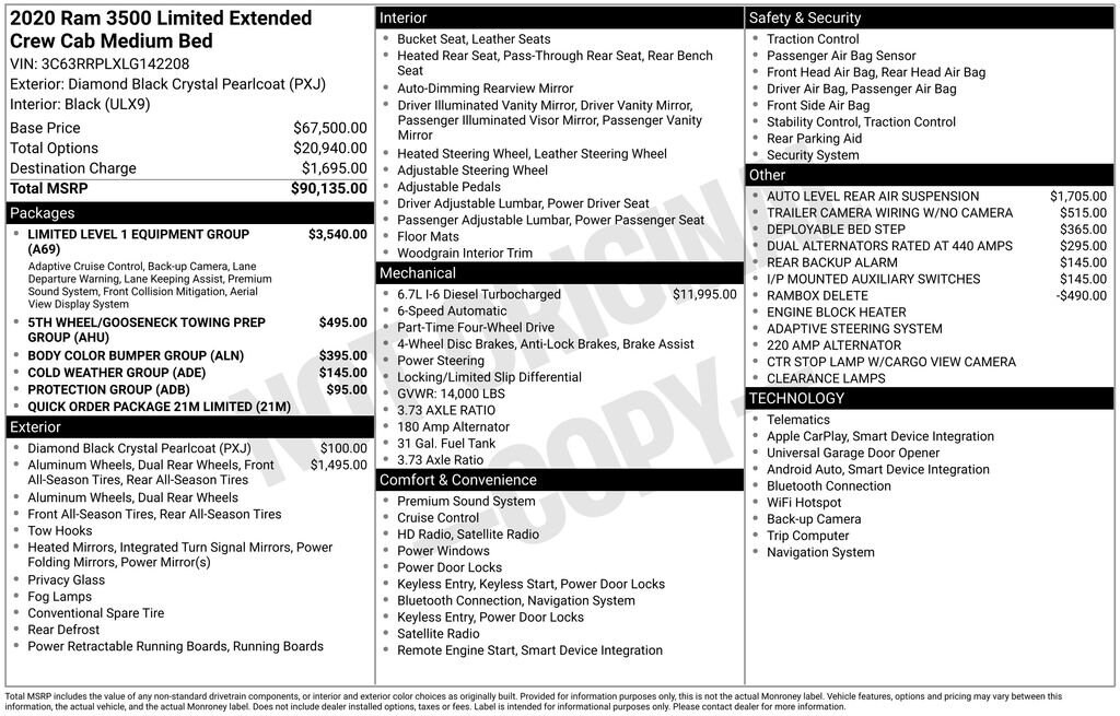 Certified by our rigorous inspection process, this 2020 Ram 3500 Limited is the embodiment of uncompromising quality and craftsmanship. With low mileage and a comprehensive 3-month/3,000-mile warranty, it represents an exceptional value proposition for discerning buyers.