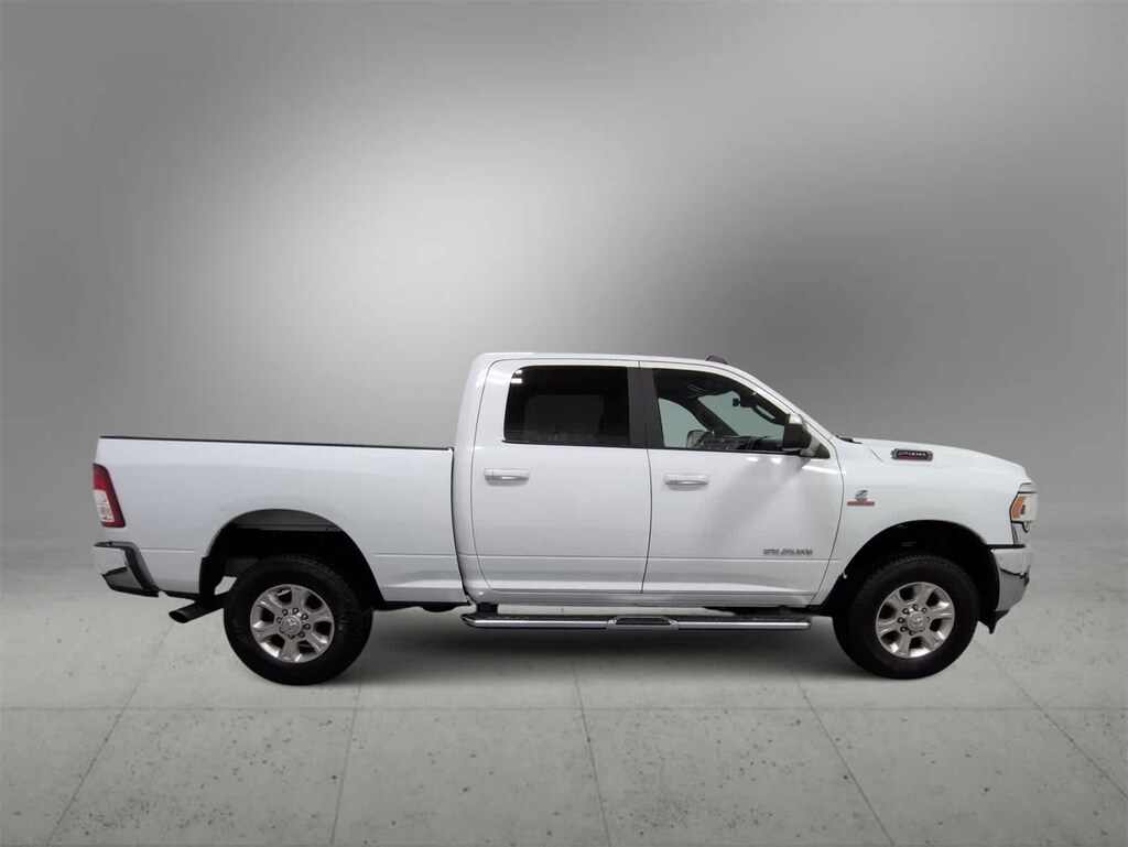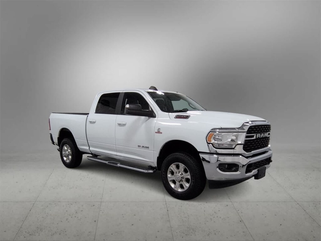 Buying our Diesel powered, Certified Pre-Owned 2022 RAM 2500 Big Horn Crew Cab 4X4 brings a most versatile player to your team in Bright White! Motivated by a TurboCharged 6.7 Liter Cummins Diesel 6 Cylinder providing 370hp and 850lb-ft of torque to a 6 Speed Automatic transmission for impressive capability. This Four Wheel Drive truck also inspires confidence with a heavy-duty suspension, and it captures attention with a compelling design. Highlights include quad halogen headlamps, heated power trailer mirrors, chrome-clad wheels, chrome bumpers, matching grille accents, an LED tailgate lamp, running boards, a spray-on bedliner, and a Class V receiver hitch.