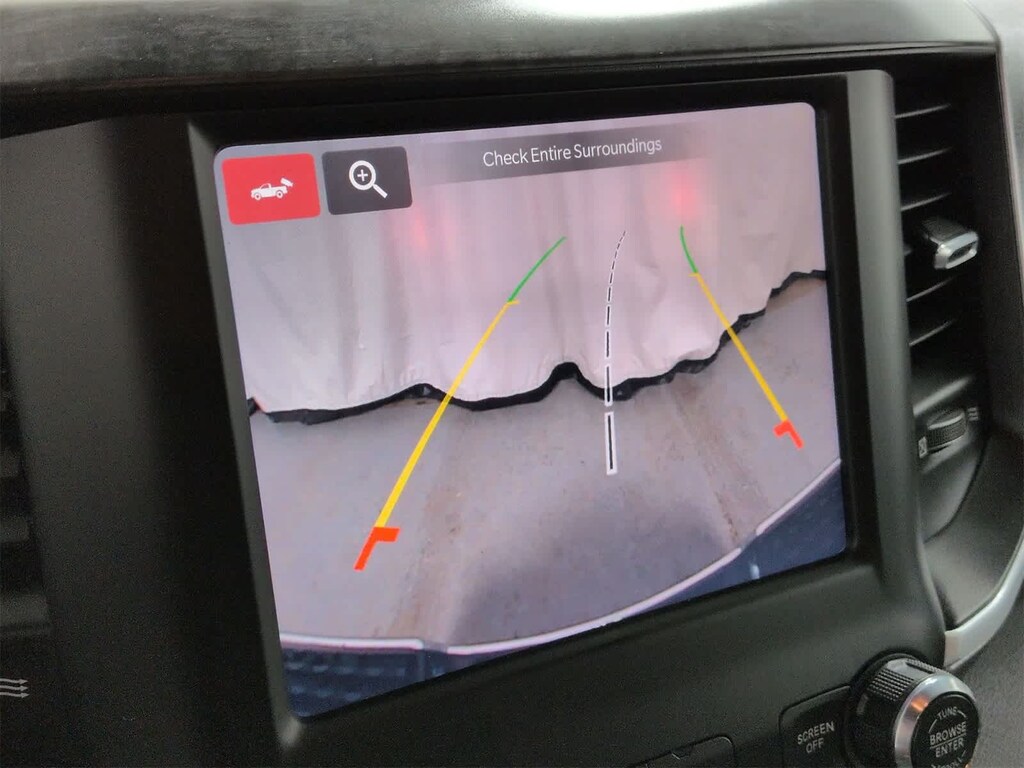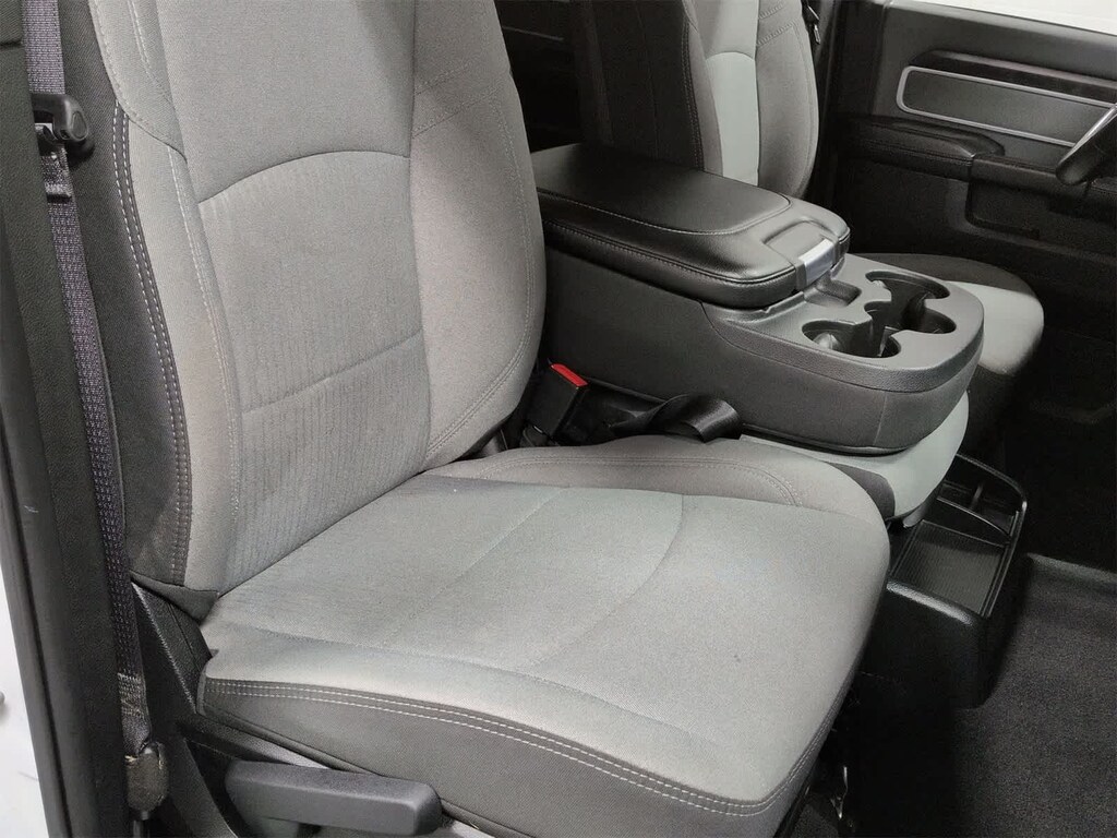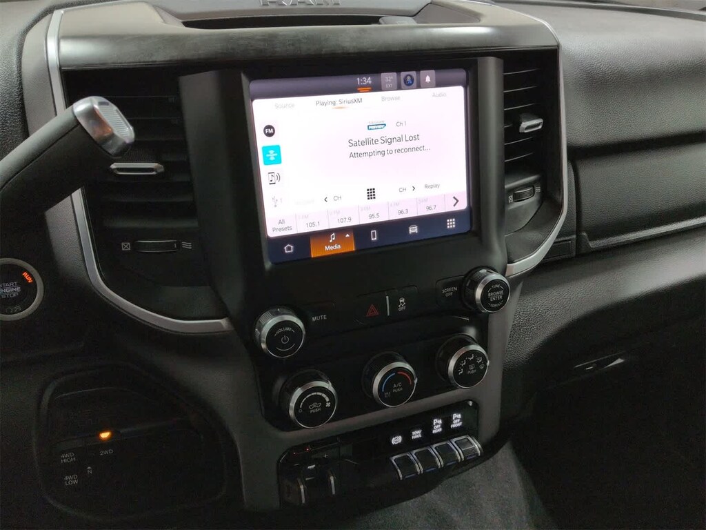 Our Big Horn cabin has key benefits for better trucking, starting with supportive cloth seats, air conditioning, power accessories, cruise control, a 12V power outlet, a 3.5-inch color driver display, and keyless access/ignition. A Uconnectî infotainment system answers the call for digital convenience with an 8.4-inch touchscreen, voice control, WiFi compatibility, Android Autoî, Apple CarPlayî, and a six-speaker sound system.