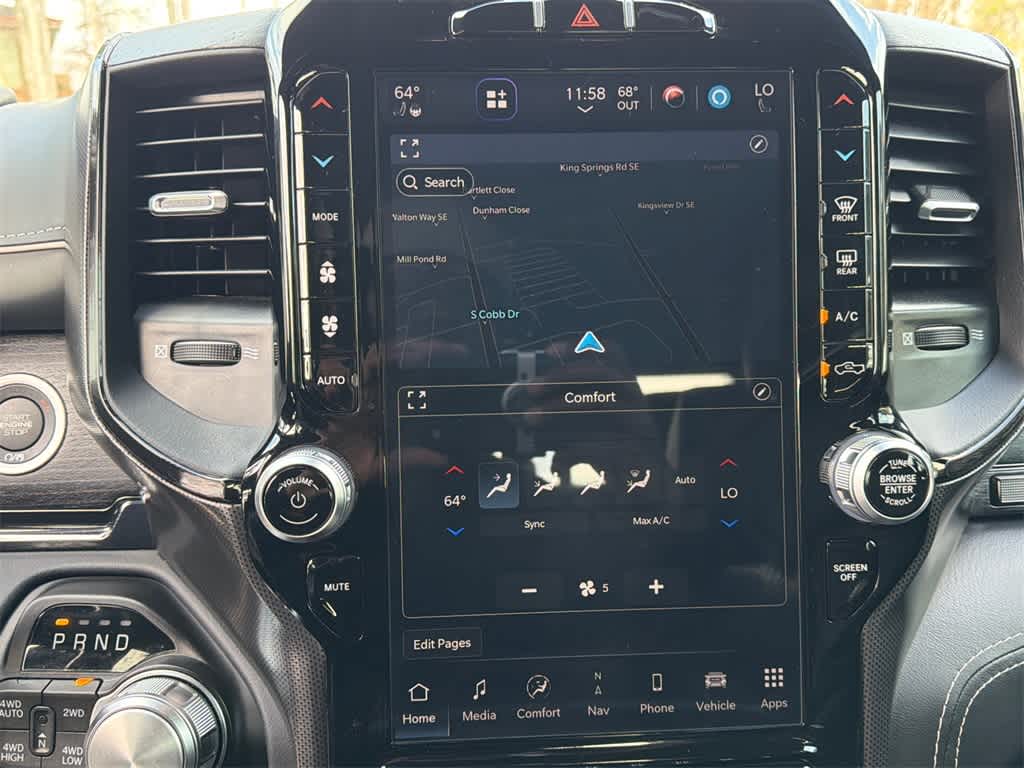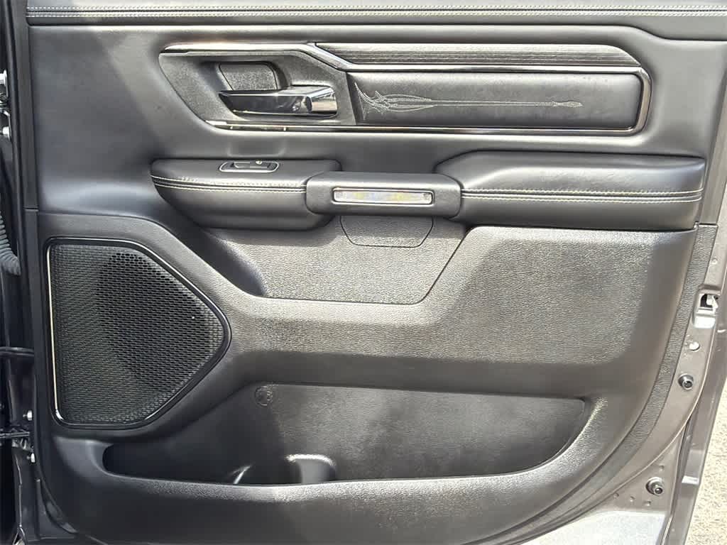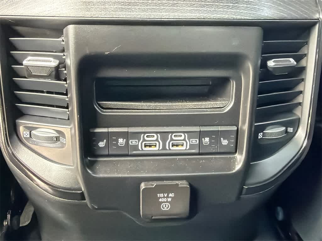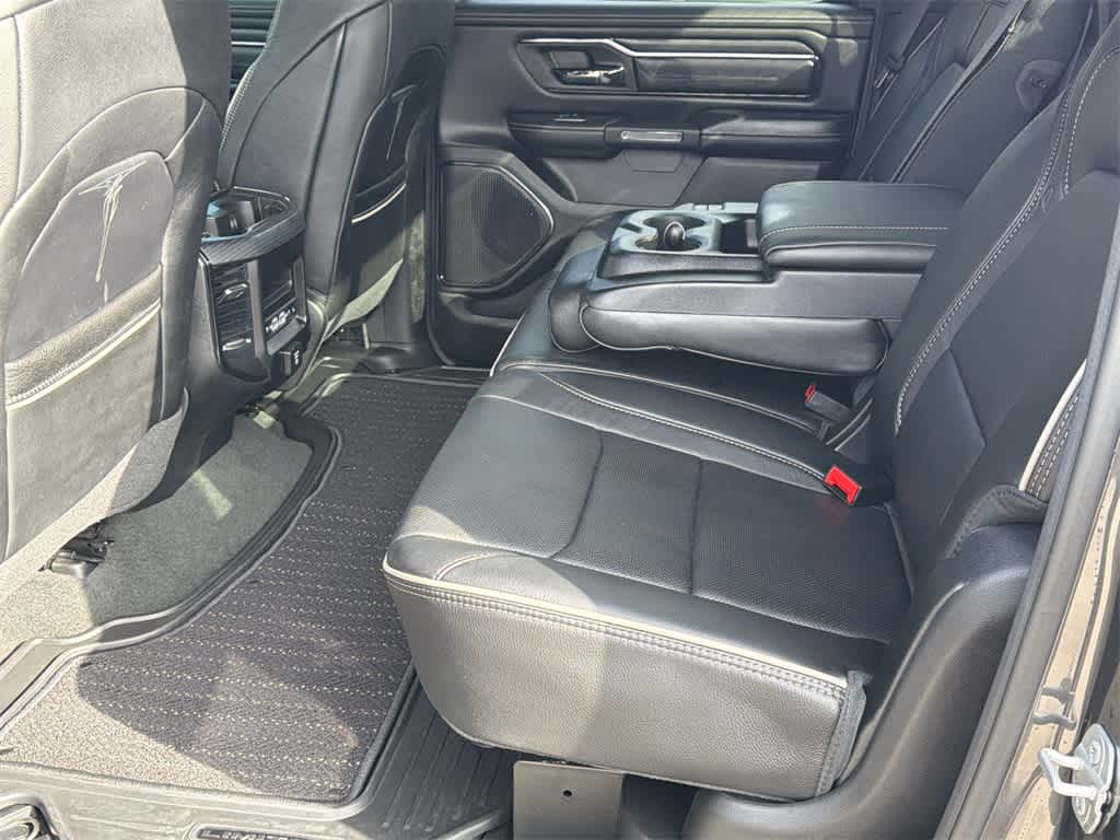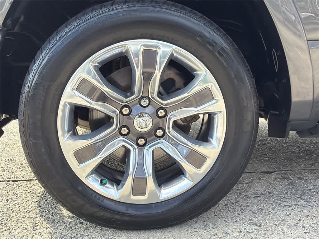 1500 Limited is nicely equipped with Body Color Bumper Group (Body Color Front Bumper and Body Color Rear Bumper w/Step Pads), Quick Order Package 27M Limited, Ford Blue Certified Non-Ford Certified, 10 Speakers, 4 Way Front Headrests, 4-Wheel Disc Brakes, 48V Belt Starter Generator, ABS brakes, Active Noise Control System, Adjustable pedals, Air Conditioning, Alloy wheels, AM/FM radio: SiriusXM with 360L, Anti-Spin Differential Rear Axle, Apple CarPlay/Android Auto, Audio memory, Auto High-beam Headlights, Auto-dimming door mirrors, Auto-Dimming Exterior Driver Mirror, Auto-dimming Rear-View mirror, Auto-leveling suspension, Automatic temperature control, Bodyside moldings, Brake assist, Bucket Seats, Bumpers: chrome, Chrome Exterior Mirrors, Compass, Convex Wide-Angle Exterior Mirror Insert, Delay-off headlights, Driver door bin, Driver Seat Memory, Driver vanity mirror, Dual front impact airbags, Dual front side impact airbags, Dual Rear Exhaust w/Bright Tips, Electronic Stability Control, Exterior Mirrors Courtesy Lamps, Exterior Mirrors w/Heating Element, Exterior Mirrors w/Memory, Exterior Mirrors w/Supplemental Signals, Front anti-roll bar, Front Bucket Seats, Front Center Armrest w/Storage, Front dual zone A/C, Front fog lights, Front reading lights, Front Seat Back Map Pockets, Front wheel independent suspension, Full Length Premium Floor Console, Fully automatic headlights, Garage door transmitter, Genuine wood console insert, Genuine wood dashboard insert, Genuine wood door panel insert, Heated door mirrors, Heated Front Seats, Heated front seats, Heated rear seats, Heated Second Row Seats, Heated Steering Wheel, Heated steering wheel, Heavy-Duty Engine Cooling, HEMI Badge, Illuminated entry, Leather steering wheel, Low tire pressure warning, Memory seat, Navigation System, Occupant sensing airbag, Outside temperature display, Overhead airbag, Overhead console, Panic alarm, ParkView Rear Back-Up Camera, Passenger door bin, Passenger vanity mirror, Passive Tuned Mass Damper, Pedal memory, Power 4-Way Driver Lumbar Adjust, Power 4-Way Passenger Lumbar Adjust, Power 8-Way Driver & Passenger Seats, Power door mirrors, Power driver seat, Power passenger seat, Power steering, Power windows, Power-Folding Mirrors, Premium Leather Trimmed Bucket Seats, Radio data system, Radio: Uconnect 5 Nav w/12.0 Display, Rain sensing wipers, Rear 60/40 Folding Split Recline Seat, Rear anti-roll bar, Rear seat center armrest, Rear step bumper, Rear window defroster, Remote keyless entry, Security system, Speed control, Split folding rear seat, Steering wheel mounted audio controls, Tachometer, Telescoping steering wheel, Tilt steering wheel, Traction control, Trip computer, Turn signal indicator mirrors, Variably intermittent wipers, Ventilated Front Seats, Ventilated front seats, Ventilated Rear Seats, Ventilated rear seats, Voltmeter, and Wheels: 20 x 9 Aluminum Painted/Polished.