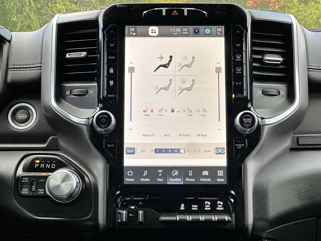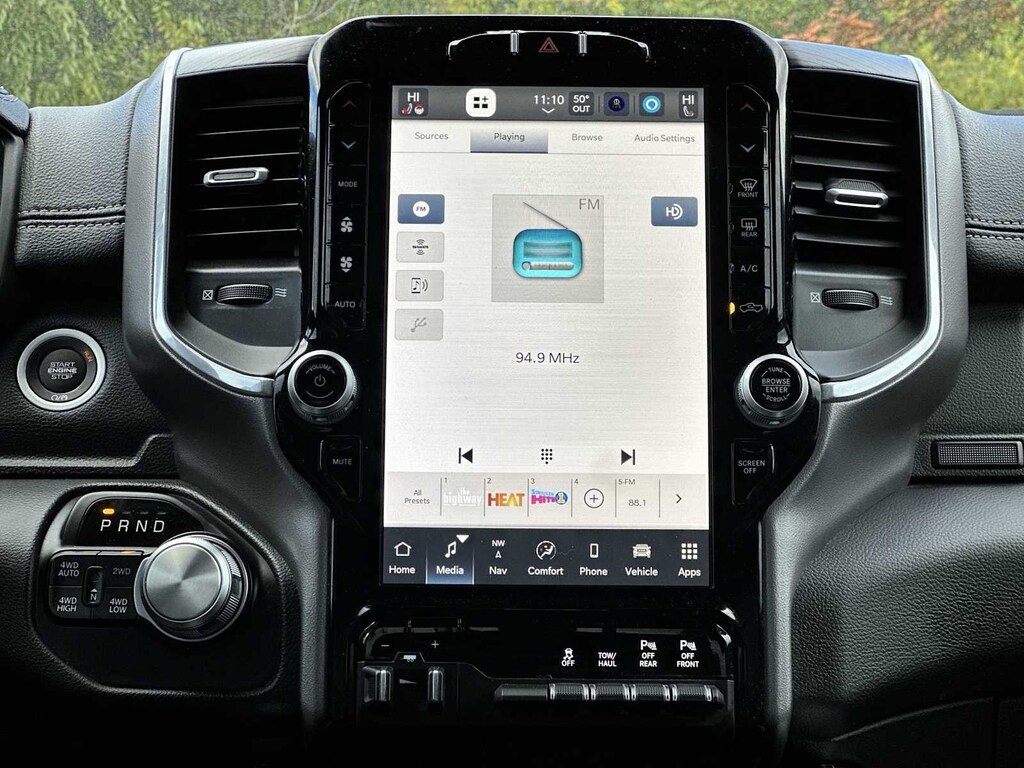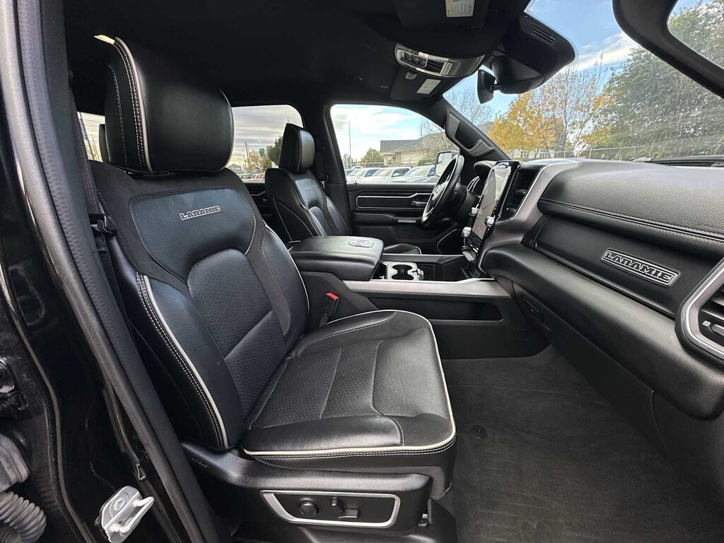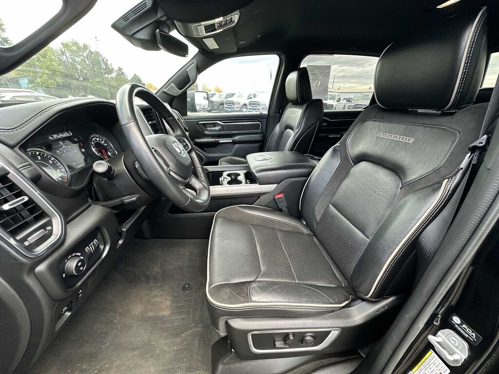 ENGINE: 3.0L V6 TURBO DIESEL GEN 3 Secondary Active Grille Shutters, 800 Amp Maintenance Free Battery, EcoDiesel Badge, Heavy Duty Engine Cooling, 250 Amp Alternator, GVWR: 7,200 lbs (DISC), Dual Rear Exhaust w/Bright Tips, Thermal Rear Axle, LARAMIE LEVEL 1 EQUIPMENT GROUP Rear Window Defroster, Blind Spot & Cross Path Detection, Rain Sensitive Windshield Wipers, ParkSense Front/Rear Park Assist w/Stop, Rear Power Sliding Window, 12 Touchscreen Display, Front LED Fog Lamps, LED Reflector Headlamps, Foam Bottle Insert (Door Trim Panel), Radio: Uconnect 5 Nav w/12.0 Display, Remote Tailgate Release, Auto High Beam Headlamp Control, Electric Shift On Demand Transfer Case, Front Door Accent Lighting, 2nd Row In Floor Storage Bins, Rear Door Accent Lighting, SPORT APPEARANCE PACKAGE Tires: 275/55R20 OWL All Season, Body Color Premium Power Mirrors, Sport Performance Hood, Sport Decal, Wheels: 20 x 9 Premium Painted w/Inserts, Body Color Exterior Mirrors, Black Interior Accents, Body Color Front Bumper, Body Color Rear Bumper w/Step Pads, Grille Surround 3 Body Color Tex 2 Black, BLACK, LEATHER TRIMMED BUCKET SEATS Bucket Seats, Center Console Parts Module, Full Length Upgraded Floor Console, ANTI-SPIN DIFFERENTIAL REAR AXLE, CLASS IV RECEIVER HITCH, TRANSMISSION: 8-SPEED AUTOMATIC (8HP75). Ram Laramie with Diamond Black Crystal Pearlcoat exterior and Black interior features a V6 Cylinder Engine with 260 HP at 3600 RPM*.