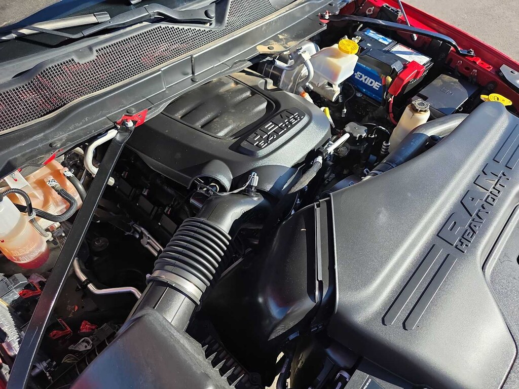 Our Accident Free, One Owner, Certified Pre-Owned 2024 RAM 2500 Big Horn Night Edition Crew Cab 4X4 in Flame Red with the Level 1 Equipment Group is engineered to make quick work out of your challenging tasks! Motivated by a 6.4 Liter HEMI V8 providing 410hp to an 8 Speed Automatic transmission for terrific towing and hauling capability. A heavy-duty suspension is standard for a confident ride, and our Four Wheel Drive truck has no-nonsense good looks with eye-catching details. This mighty machine is ready to rule the road with heated power trailer mirrors, a Class V receiver hitch, and the Night Editions black badging, black headlamp bezels, painted bumpers, gloss black nostrils, and 20-inch black painted aluminum wheels. Black step bars and a spray-on bedliner have also been installed.