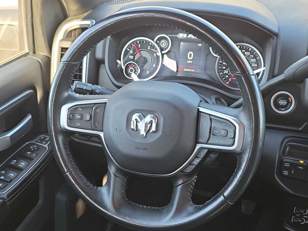 Big-time advantages in our Big Horn cabin include comfortable cloth seats, air conditioning, power accessories, door-sill scuff plates, pushbutton ignition, a 12V power outlet, keyless access, cruise control, and clever storage solutions. Our Level 1 Pack levels up with a leather-wrapped steering wheel and Uconnectî 5 technology with an 8.4-inch touchscreen, WiFi compatibility, Android Autoî, Apple CarPlayî, voice control, Bluetoothî, and a six-speaker sound system.