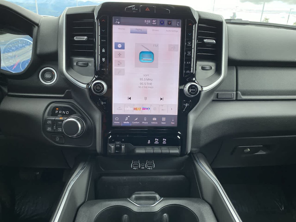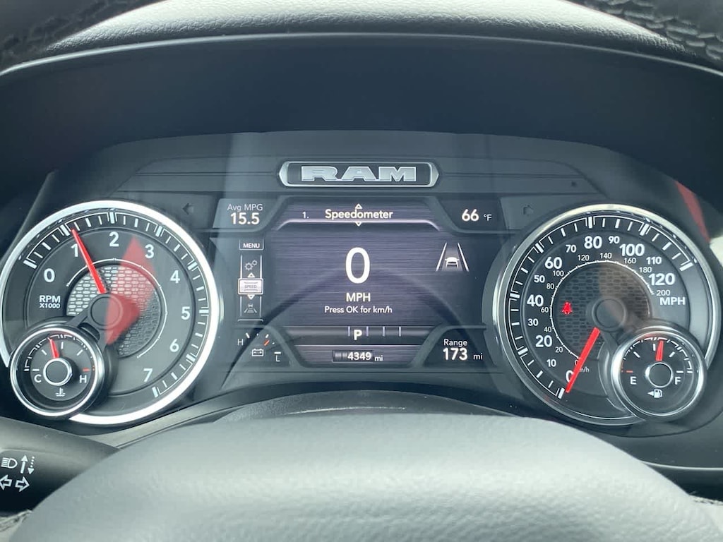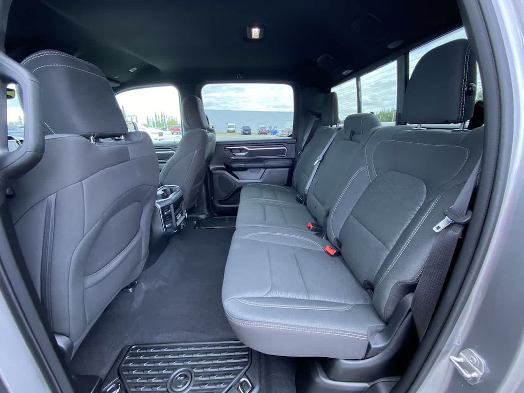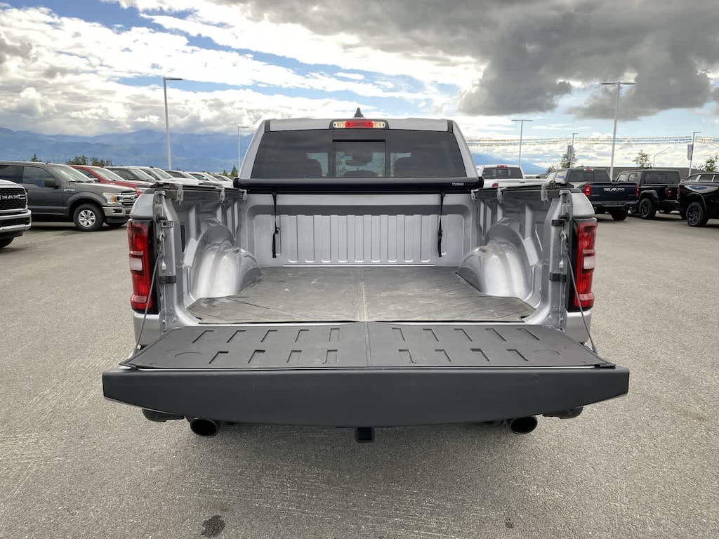 BIG HORN LEVEL 2 EQUIPMENT GROUP Google Android Auto®, Power Adjustable Pedals, Leather Wrapped Steering Wheel, 12 Touchscreen Display, Glove Box Lamp, Auto Power-Folding Mirrors, 115V Auxiliary Rear Power Outlet, Media Hub w/2 Charge Only USBs, Heated Front Seats, Security Alarm, Black Premium Power Mirrors, Apple CarPlay®, Premium Overhead Console, 9 Amplified Speakers w/Subwoofer, Remote Tailgate Release, 115V Auxiliary Power Outlet, LED Dome Lamp w/On/Off Switch, Universal Garage Door Opener, 2nd Row In Floor Storage Bins, Sun Visors w/Illuminated Vanity Mirrors, LED Footwell Lighting, Power 2-Way Driver Lumbar Adjust, Rear Window Defroster, Rear View Auto Dim Mirror, Rear Power Sliding Window, GPS Navigation, Overhead LED Lamps, Auto Dim Exterior Driver Mirror, SiriusXM w/360L, ENGINE: 3.0L I6 HURRICANE SO TWIN TURBO ESS Aux Battery, Secondary Active Grille Shutters, 700 Amp Maintenance Free Battery, Active Noise Control System, GVWR: 7,100 lbs, 3.55 Rear Axle Ratio, Dual Rear Exhaust w/Bright Tips, Start-Stop Dual Battery System, 230 Amp Alternator, NIGHT EDITION Tires: 275/55R20 OWL All Season, Accent Color Premium Power Mirrors, Exterior Mirrors w/Supplemental Signals, Black Headlamp Bezels, Exterior Mirrors Courtesy Lamps, Grille Black Surround Black Mesh, Auto Power-Folding Mirrors, Wheels: 20 x 9.0 Aluminum Painted Clad, Auto Dim Exterior Driver Mirror, Black Exterior Truck Badging, Anti-Spin Differential Rear Axle, Accent Color Door Handles, Accent Color Tailgate Handle, Black Interior Accents, Body Color Front Bumper, Body Color Rear Bumper w/Step Pads, Black Tail Lamp Bezels, RAM Grille Badge - Black, Black Painted Exterior Mirrors Caps, PROTECTION GROUP Transfer Case Skid Plate, Steering Gear Skid Plate, Fuel Tank Skid Plate, Tow Hooks, MOPAR FRONT & REAR RUBBER FLOOR MATS, TRANSMISSION: 8-SPEED AUTOMATIC (8HP75), BLACK, DELUXE CLOTH BUCKET SEATS Bucket Seats, Full Length Floor Console, Power Adjust 8-Way Driver Seat, Rear Center Armrest, Power 2-Way Driver Lumbar Adjust. Ram Big Horn with Billet Silver Metallic Clearcoat exterior and Black interior features a Straight 6 Cylinder Engine with 420 HP at 5200 RPM*.