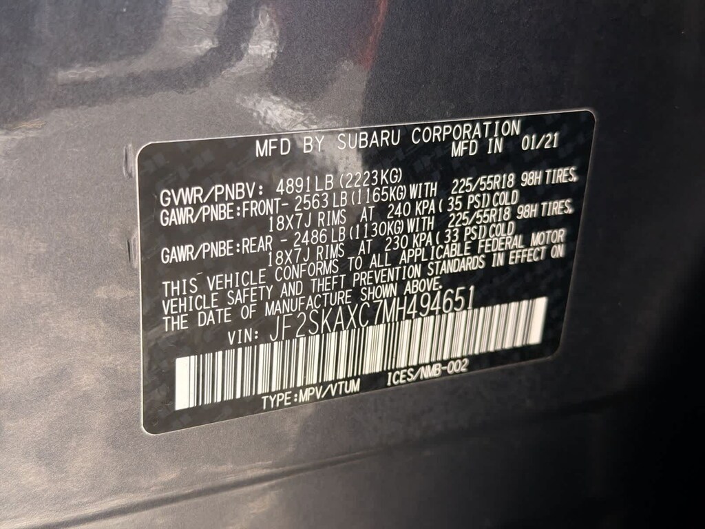 - JF2SKAXC7MH494651