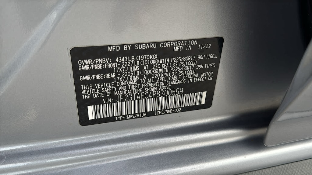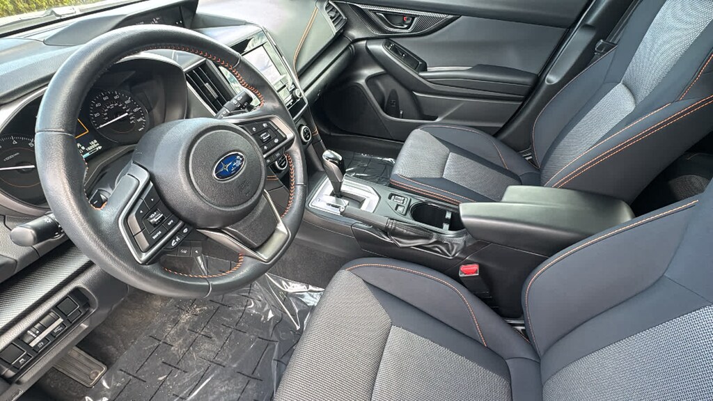 MOONROOF & BSD W/RCTA & POWER DRIVER SEAT liquid filled rubber engine mounts, digital fuel gauge w/fuel door position indicator, digital/digital dual-mode trip odometer, digital speedometer, door ajar indicator, eco gauge (fuel economy), engine oil level warning indicator, current and average fuel economy A and B and distance to empty, journey travel time and distance, paddle shift ratio position indicator, road surface freeze warning indicator, welcome/good-bye message, windshield washer fluid low warning indicator, X-MODE operation indicator/control switch, advanced adaptive cruise control (control system operation, ready/off/on/set/lane centering indicator) following distance setting, eyesight camera malfunction warning, follow distance setting indicator, hold indicator, lead vehicle, AUTO-DIMMING MIRROR W/COMPASS & HOMELINK. Subaru Premium with Ice Silver Metallic exterior and Black w/Red Stitching interior features a 4 Cylinder Engine with 152 HP at 6000 RPM*.