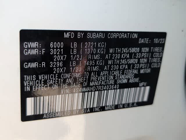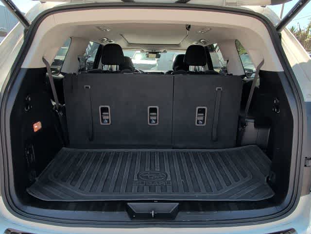This 2024 Subaru Ascent Onyx Edition in Crystal White Pearl, features Standard Model, 2nd Row Captains Chairs Rear Seatback Protector, 3rd row seats: bench, 4-Wheel Disc Brakes, 6 Speakers, ABS brakes, Air Conditioning, Alloy wheels, AM/FM radio: SiriusXM, Auto High-beam Headlights, Auto-dimming Rear-View mirror, Automatic temperature control, Axle Ratio: 4.44, Black Chrome Rear Bumper Cover, Brake assist, Bumpers: body-color, Cargo Tray, Compass, Delay-off headlights, Driver door bin, Driver vanity mirror, Dual front impact airbags, Dual front side impact airbags, Electronic Stability Control, Emergency communication system: STARLINK Safety and Security (Subscription Required), Exterior Parking Camera Rear, Four wheel independent suspension, Front anti-roll bar, Front Bucket Seats, Front Center Armrest, Front dual zone A/C, Front fog lights, Front reading lights, Fully automatic headlights, Garage door transmitter: HomeLink, Heated door mirrors, Heated Front Bucket Seats, Heated front seats, Heated steering wheel, Illuminated entry, Knee airbag, Leather Shift Knob, Leather steering wheel, Low tire pressure warning, Occupant sensing airbag, Outside temperature display, Overhead airbag, Overhead console, Panic alarm, Passenger door bin, Passenger vanity mirror, Power door mirrors, Power driver seat, Power Liftgate, Power moonroof, Power steering, Power windows, Radio data system, Radio: Subaru STARLINK 11.6 Multimedia Plus System, Rear air conditioning, Rear anti-roll bar, Rear reading lights, Rear window defroster, Rear window wiper, Reclining 3rd row seat, Remote keyless entry, Security system, Speed control, Speed-sensing steering, Splash Guards, Split folding rear seat, Spoiler, STARLINK/Apple CarPlay/Android Auto, StarTex Upholstery, Steering wheel mounted audio controls, Tachometer, Telescoping steering wheel, Tilt steering wheel, Traction control, Trip computer, Turn signal indicator mirrors, Variably intermittent wipers, and Wheels: 20 x 7.5 J Aluminum Alloy w/Black Finish: Subaru Certified, BLUETOOTH HANDS FREE, BACK-UP CAMERA, APPLE CAR PLAY, SUNROOF, HEATED SEATS, POWER SEATS, KEYLESS-GO, THIRD ROW, ALLOY WHEELS, CLEAN VEHICLE HISTORY, 1ST OIL CHANGE FREE. Certified. Subaru Certified Pre-Owned Details: