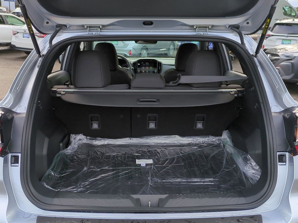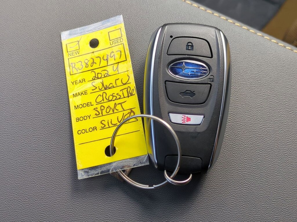 3.70 Axle Ratio, 4-Wheel Disc Brakes, 6 Speakers, ABS brakes, Air Conditioning, Alloy wheels, AM/FM radio: SiriusXM, Anti-whiplash front head restraints, Auto High-beam Headlights, Automatic temperature control, Brake assist, Bumpers: body-color, Driver door bin, Driver vanity mirror, Dual front impact airbags, Dual front side impact airbags, Electronic Stability Control, Emergency communication system: STARLINK Safety and Security (Subscription Required), Exterior Parking Camera Rear, Four wheel independent suspension, Front anti-roll bar, Front Bucket Seats, Front Center Armrest, Front dual zone A/C, Front fog lights, Front reading lights, Fully automatic headlights, Heated door mirrors, Heated Front Bucket Seats, Heated front seats, Illuminated entry, Knee airbag, Leather Shift Knob, Low tire pressure warning, Occupant sensing airbag, Outside temperature display, Overhead airbag, Overhead console, Panic alarm, Passenger door bin, Passenger vanity mirror, Power door mirrors, Power steering, Power windows, Radio data system, Radio: Subaru STARLINK 11.6 Multimedia Plus Sys, Rear anti-roll bar, Rear seat center armrest, Rear window defroster, Rear window wiper, Remote keyless entry, Security system, Speed control, Speed-sensing steering, Split folding rear seat, Spoiler, Sport Cloth Upholstery, STARLINK/Apple CarPlay/Android Auto, Steering wheel mounted audio controls, Tachometer, Telescoping steering wheel, Tilt steering wheel, Traction control, Trip computer, Turn signal indicator mirrors, Variably intermittent wipers, Wheels: 18 x 7.0J Dark Gray Aluminum Alloy. Ice Silver Metallic 2024 Subaru Crosstrek Sport AWD Lineartronic CVT 2.5L 4-Cylinder DOHC 16V