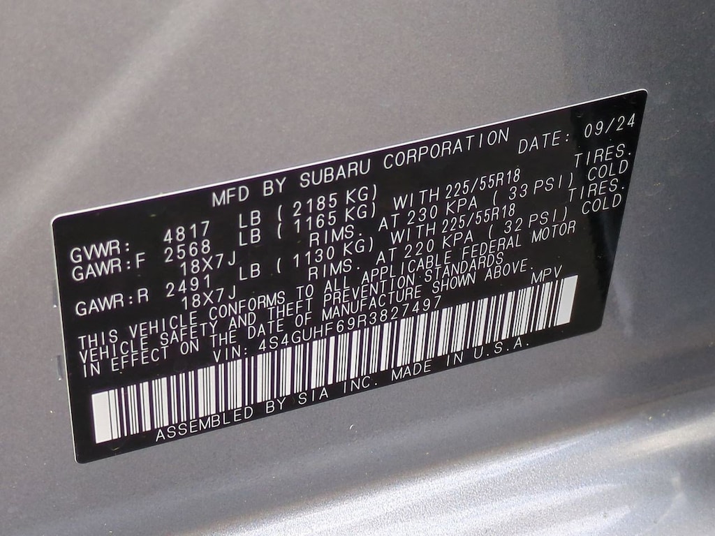 - Rear tires: 225/55VR18.0