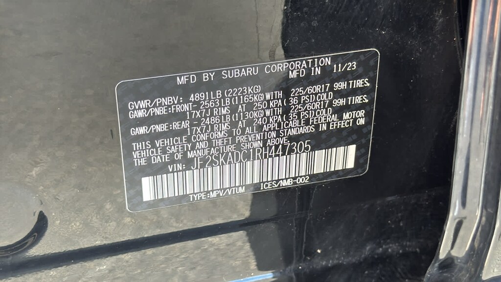 BLIND SPOT DETECTION W/RCTA & POWER REAR GATE Blind-Spot Detection (BSD), Rear Cross-Traffic Alert (RCTA) system, Power Rear Gate, automatic close and height memory, EyeSight System, automatic emergency steering, Drivers Seatback Divided Pocket, Multi-Function High Grade Display, 6.3 LCD color display screen, MFD mode operation switch on steering wheel, ambient temperature gauge, analog clock/digital clock/calendar, audio system information, average vehicle speed, favorite screen w/user configurable triple meter, fuel economy w/current and average fuel economy A and B and distance to empty, HVAC information, information screen, interrupt warning screen w/outside temperature/vehicle systems, self check and vehicle maintenance reminder, weather information, vehicle activation status for. Subaru Premium with Crystal Black Silica exterior and Black interior features a 4 Cylinder Engine with 182 HP at 5800 RPM*.