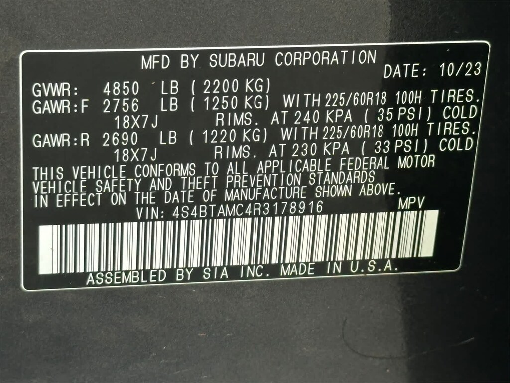Subaru Certified. Magnetite Gray Metallic exterior and Slate Black interior. Heated Leather Seats, Heated Rear Seat, Aluminum Wheels, All Wheel Drive, Power Liftgate.