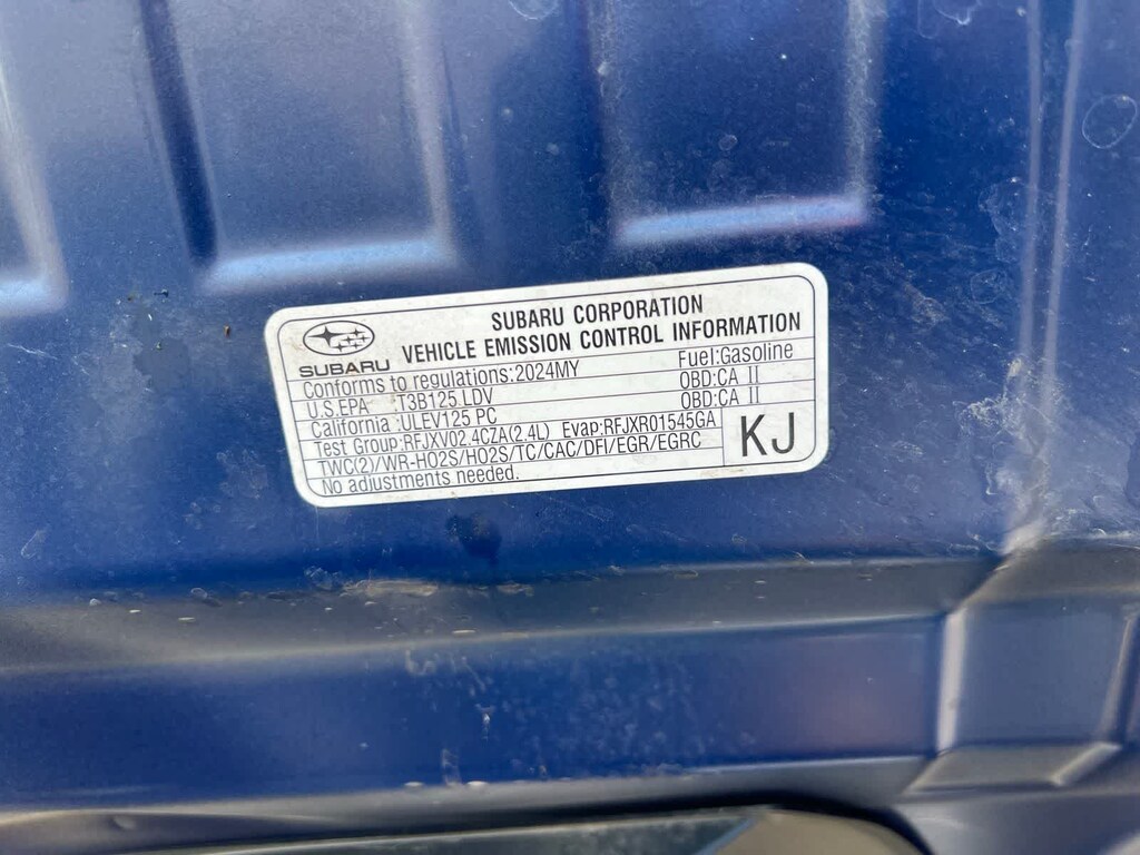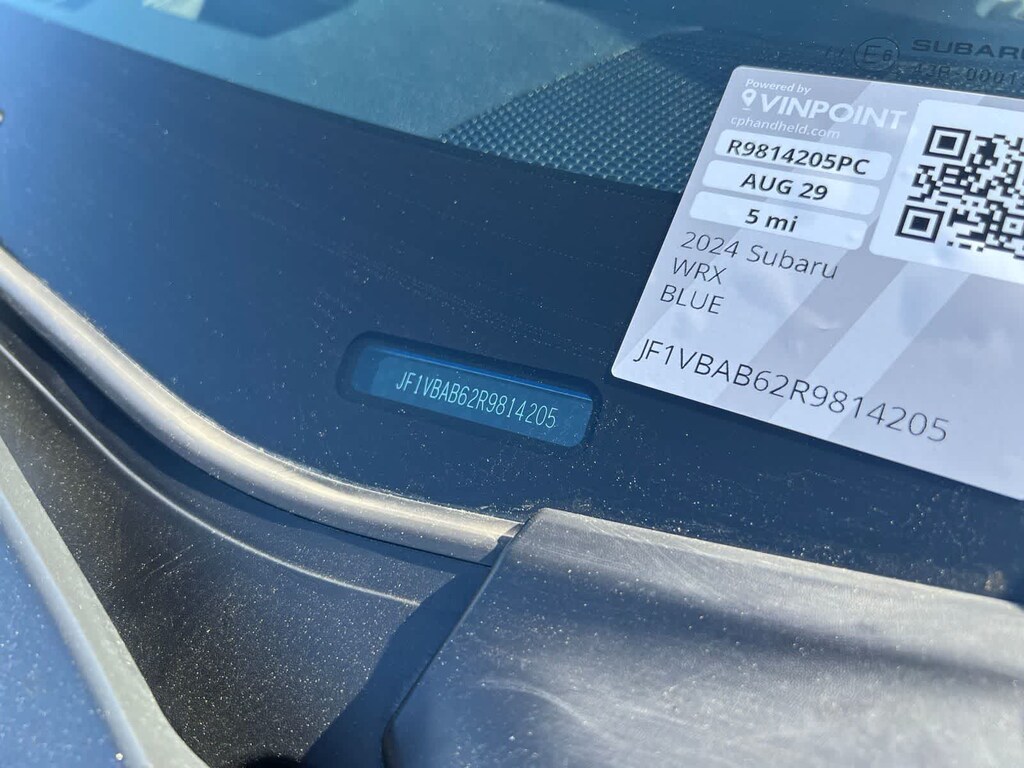 Certified. WR Blue Pearl 2024 Subaru WRX AWD 6-Speed Manual 2.4L DOHC FRESH ENGINE and CABIN FILTERS, FRESH OIL CHANGE, DETAILED INTERIOR AND EXTERIOR FOR DELIVERY, CERTIFIED BY CARFAX - NO ACCIDENTS, CERTIFIED BY CARFAX - ONE OWNER, MANAGERS SPECIAL, Multi Point Safety and Mechanical Inspection Performed by Certified Technician, ** ALLOY WHEELS, ** APPLE CARPLAY, ** BACK UP CAMERA, ** BLIND SPOT ALERT, ** BLUETOOTH, HANDS-FREE, ** BOTH KEY FOBS, ** HEATED SEATS, ** KEYLESS ENTRY, ** REARVIEW CAMERA, ** SERVICE RECORDS AVAILABLE, ** STEERING WHEEL CONTROLS, PRE OWNED, USED CAR, CERTIFIED, SERVICE RECORDS AVAILABLE, 4-Wheel Disc Brakes, 6 Speakers, ABS brakes, Air Conditioning, All-Weather Floor Liners, Alloy wheels, AM/FM radio: SiriusXM, Auto High-beam Headlights, Auto-dimming Rear-View mirror, Automatic temperature control, Brake assist, Bumpers: body-color, Cargo Tray, Cloth Upholstery w/Red Stitching, Driver door bin, Driver vanity mirror, Dual front impact airbags, Dual front side impact airbags, Electronic Stability Control, Emergency communication system: STARLINK Safety and Security (Subscription Required), Exterior Parking Camera Rear, Four wheel independent suspension, Front anti-roll bar, Front Bucket Seats, Front Center Armrest, Front dual zone A/C, Front reading lights, Fully automatic headlights, Illuminated entry, Knee airbag, Leather Shift Knob, Leather steering wheel, Low tire pressure warning, Occupant sensing airbag, Outside temperature display, Overhead airbag, Overhead console, Panic alarm, Passenger door bin, Passenger vanity mirror, Performance Design Front Bucket Seats, Power door mirrors, Power steering, Power windows, Radio data system, Radio: Subaru STARLINK 11.6 Multimedia Plus Sys, Rear anti-roll bar, Rear window defroster, Remote keyless entry, Security system, Speed control, Speed-sensing steering, Split folding rear seat, Sport steering wheel, Standard Model, STARLINK/Apple CarPlay/Android Auto, Steering wheel mounted audio controls, Tachometer, Telescoping steering wheel, Tilt steering wheel, Traction control, Trip computer, Variably intermittent wipers, Wheels: 17 x 8 Gray Finish Aluminum Alloy.