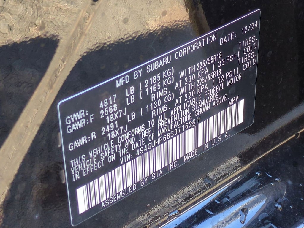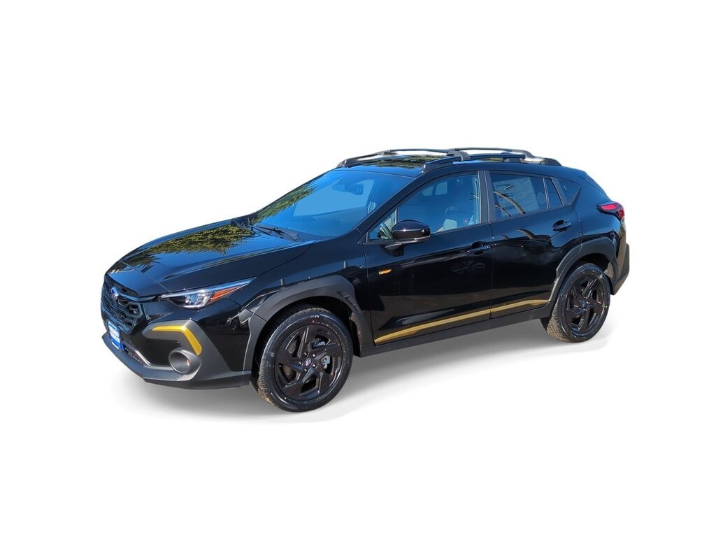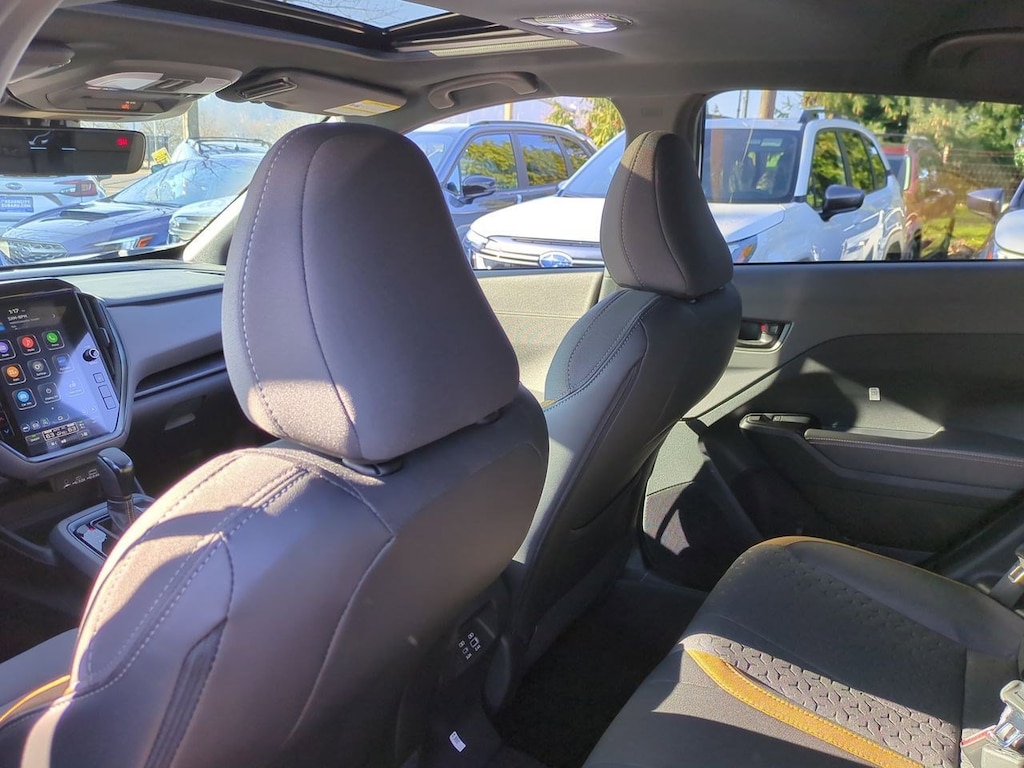 10-Way Power Drivers Seat, 4-Wheel Disc Brakes, 6 Speakers, ABS brakes, Aero Crossbar Set, Air Conditioning, All-Weather Floor Liners, Alloy wheels, AM/FM radio: SiriusXM, Anti-whiplash front head restraints, Auto High-beam Headlights, Auto-Dimming Exterior Mirror w/Approach Light, Auto-Dimming Mirror w/Compass & HomeLink, Automatic temperature control, Blind Spot Detection (BSD), Brake assist, BSD/RCTA & Power Driver Seat & Power Moonroof, Bumpers: body-color, Driver door bin, Driver vanity mirror, Dual front impact airbags, Dual front side impact airbags, Electronic Stability Control, Emergency communication system, Exterior Parking Camera Rear, Four wheel independent suspension, Front anti-roll bar, Front Bucket Seats, Front Center Armrest, Front dual zone A/C, Front fog lights, Front reading lights, Fully automatic headlights, Heated door mirrors, Heated Front Bucket Seats, Heated front seats, Illuminated entry, Knee airbag, Leather Shift Knob, Leather steering wheel, LED Upgrade, Low tire pressure warning, Occupant sensing airbag, Outside temperature display, Overhead airbag, Overhead console, Panic alarm, Passenger door bin, Passenger vanity mirror, Popular Package #3A, Power door mirrors, Power Moonroof, Power steering, Power windows, Radio data system, Radio: Subaru 11.6 Multimedia Plus System, Rear anti-roll bar, Rear Bumper Cover, Rear Cross-Traffic Alert (RCTA) System, Rear seat center armrest, Rear Seatback Protector, Rear window defroster, Rear window wiper, Remote keyless entry, Security system, Speed control, Speed-sensing steering, Split folding rear seat, Spoiler, Sport Cloth Upholstery, Steering wheel mounted audio controls, Tachometer, Telescoping steering wheel, Tilt steering wheel, Traction control, Trip computer, Turn signal indicator mirrors, Variably intermittent wipers, Wheels: 18 x 7.0 J Dark Gray Aluminum-Alloy. Crystal Black Silica 2025 Subaru Crosstrek Sport AWD Lineartronic CVT 2.5L 4-Cylinder DOHC 16V