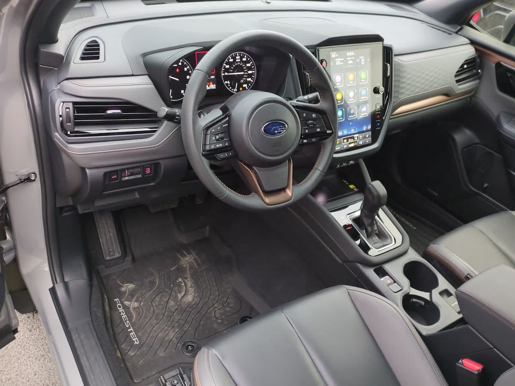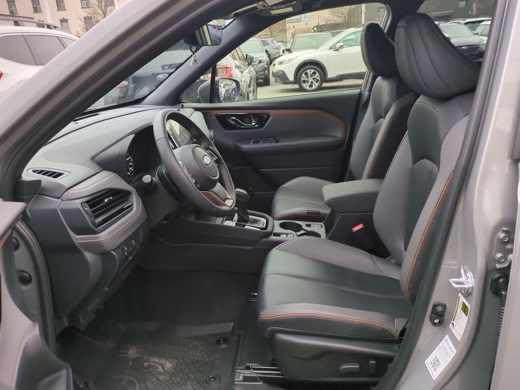 CARFAX One-Owner. Clean CARFAX. Certified. Pearl 2025 Subaru Forester Sport AWD Lineartronic CVT 2.5L 4-Cylinder DOHC 16V Subaru Certified Pre-Owned Certified, 4-Wheel Disc Brakes, 6 Speakers, ABS brakes, Air Conditioning, All-Weather Floor Liners, Alloy wheels, AM/FM radio: SiriusXM with 360L, Anti-whiplash front head restraints, Auto High-beam Headlights, Auto-Dimming Mirror w/Compass & HomeLink, Automatic temperature control, Brake assist, Bumpers: body-color, Cargo Tray, Center Console Tray, Door Projector Lights, Driver door bin, Driver vanity mirror, Dual front impact airbags, Dual front side impact airbags, Electronic Stability Control, Emergency communication system: MySubaru Safety (3-year free trial), Exterior Parking Camera Rear, Four wheel independent suspension, Front anti-roll bar, Front Bucket Seats, Front Center Armrest, Front dual zone A/C, Front fog lights, Front reading lights, Fully automatic headlights, harman/kardon Audio & Power Rear Gate & RAB, harman/kardon Speaker System, Heated door mirrors, Heated Front Bucket Seats, Heated front seats, Illuminated entry, Knee airbag, Leather steering wheel, LED Upgrade, Low tire pressure warning, Occupant sensing airbag, Outside temperature display, Overhead airbag, Overhead console, Panic alarm, Passenger door bin, Passenger vanity mirror, Power door mirrors, Power driver seat, Power moonroof: Panoramic