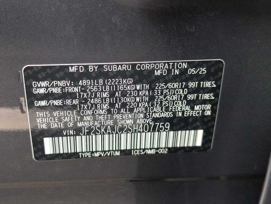 - JF2SKAJC2SH407759