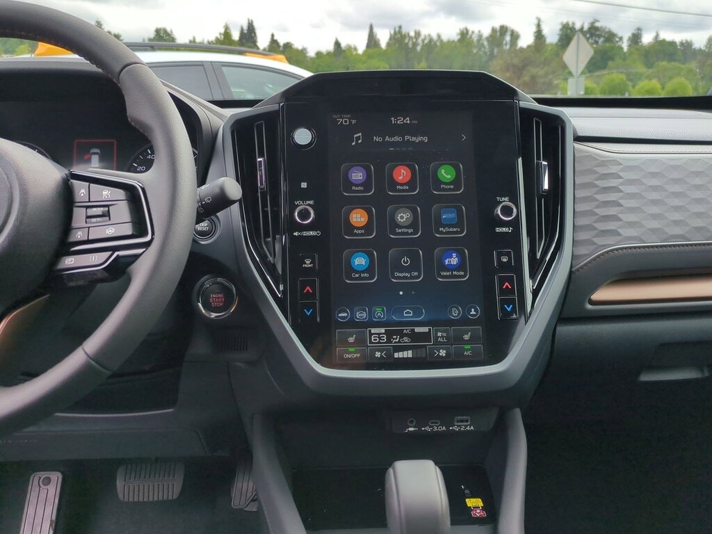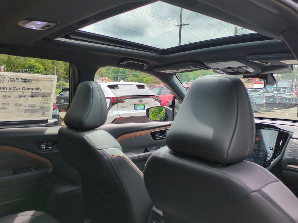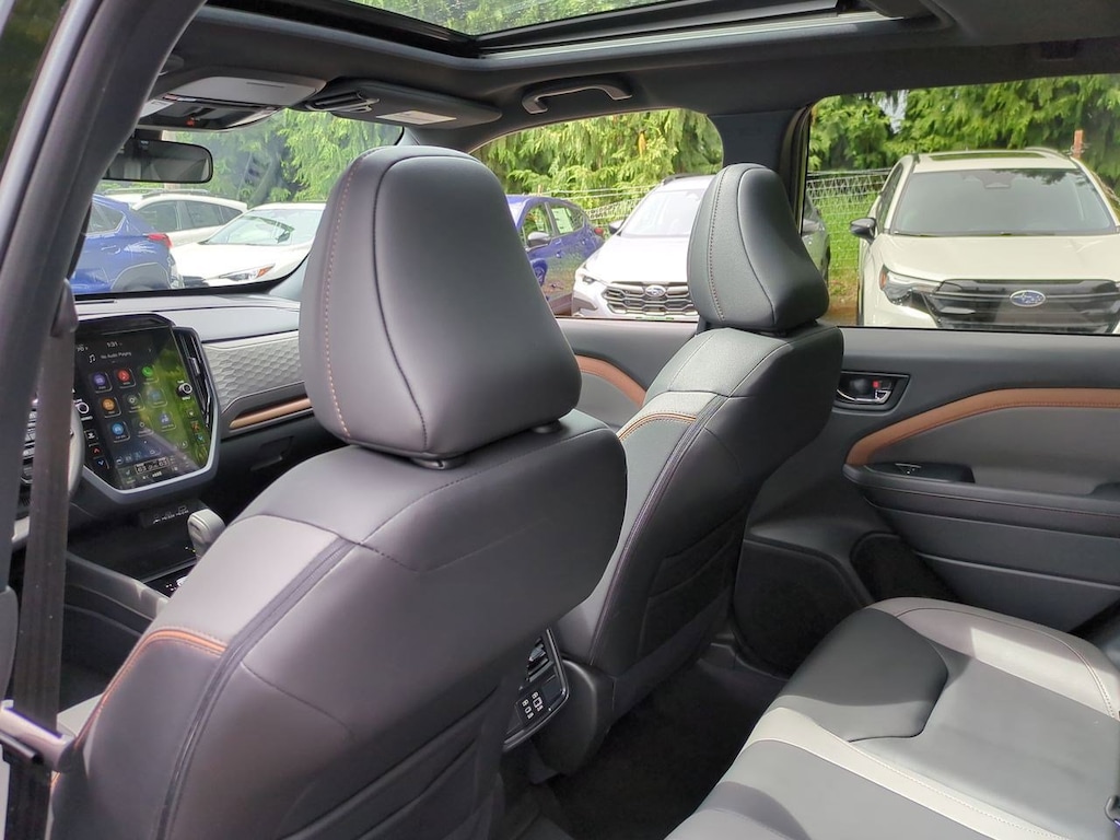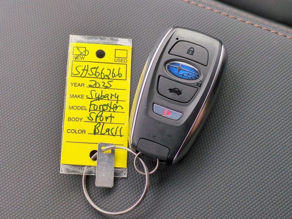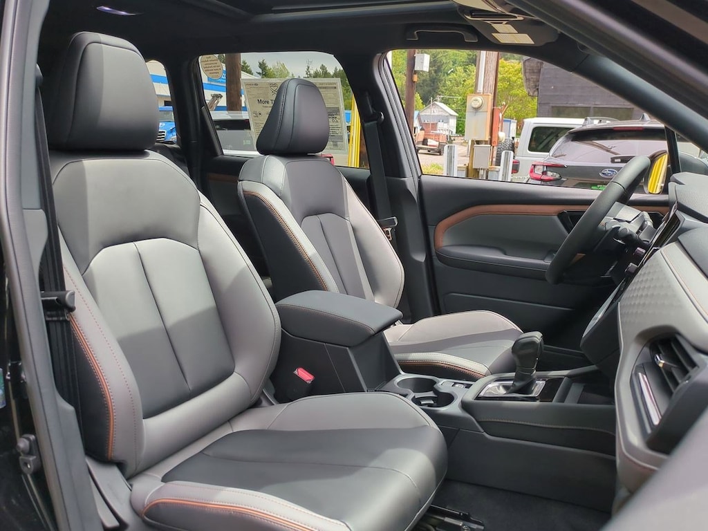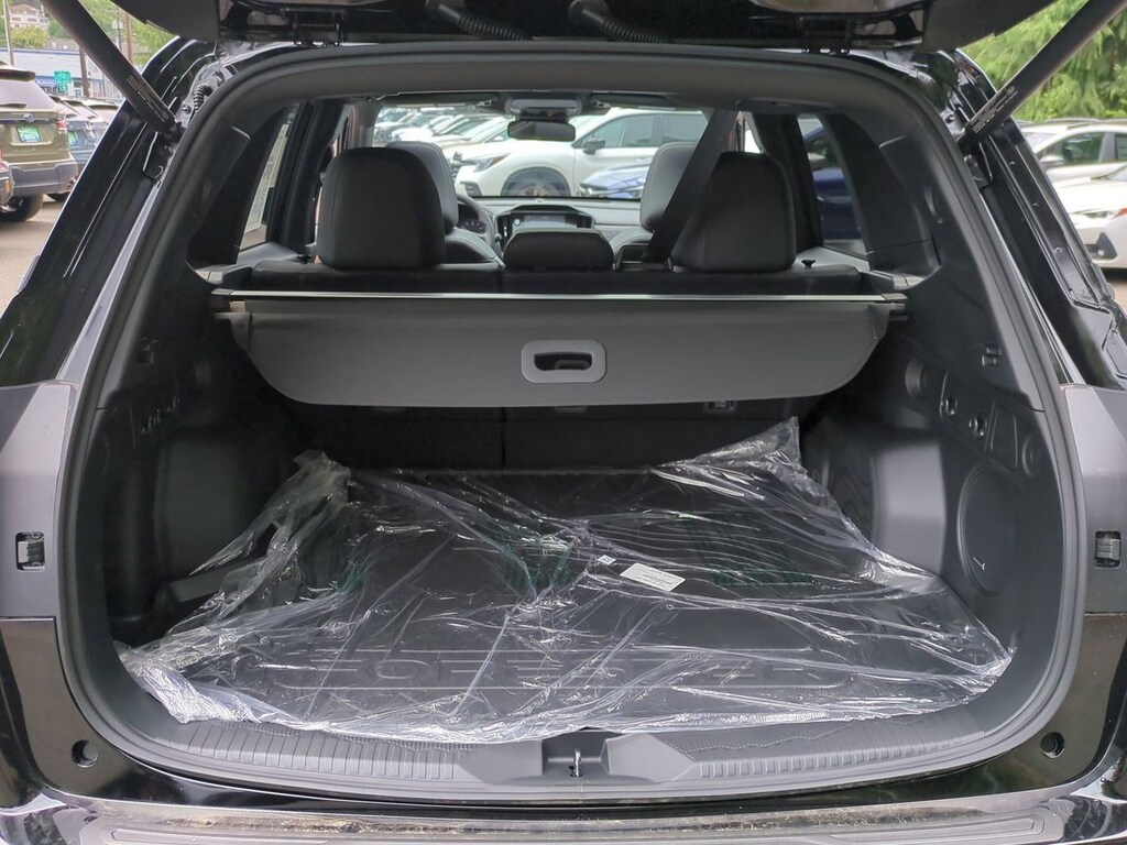 4-Wheel Disc Brakes, 6 Speakers, ABS brakes, Air Conditioning, All-Weather Floor Liners, Alloy wheels, AM/FM radio: SiriusXM with 360L, Anti-whiplash front head restraints, Auto High-beam Headlights, Automatic temperature control, Brake assist, Bumpers: body-color, Cargo Tray, Driver door bin, Driver vanity mirror, Dual front impact airbags, Dual front side impact airbags, Electronic Stability Control, Emergency communication system: MySubaru Safety (3-year free trial), Exterior Parking Camera Rear, Four wheel independent suspension, Front anti-roll bar, Front Bucket Seats, Front Center Armrest, Front dual zone A/C, Front fog lights, Front reading lights, Fully automatic headlights, harman/kardon Audio & Power Rear Gate & RAB, harman/kardon Speaker System, Heated door mirrors, Heated Front Bucket Seats, Heated front seats, Illuminated entry, Knee airbag, Leather steering wheel, Low tire pressure warning, Occupant sensing airbag, Outside temperature display, Overhead airbag, Overhead console, Panic alarm, Passenger door bin, Passenger vanity mirror, Power door mirrors, Power driver seat, Power moonroof: Panoramic, Power Rear Gate, Power steering, Power windows, Protection Package, Radio data system, Radio: Subaru 11.6 Multimedia Plus System, Rear anti-roll bar, Rear Bumper Cover, Rear seat center armrest, Rear window defroster, Rear window wiper, Remote keyless entry, Reverse Automatic Braking (RAB) System, Security system, Speed control, Speed-sensing steering, Splash Guards, Split folding rear seat, Spoiler, Sport StarTex Upholstery, Steering wheel mounted audio controls, Tachometer, Telescoping steering wheel, Tilt steering wheel, Traction control, Trip computer, Turn signal indicator mirrors, Variably intermittent wipers, Wheels: 19 x 7.5 J Bronze Finish Aluminum-Alloy. Crystal Black Silica 2025 Subaru Forester Sport AWD Lineartronic CVT 2.5L 4-Cylinder DOHC 16V