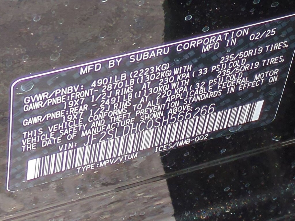 - Front tires: 235/50VR19.0