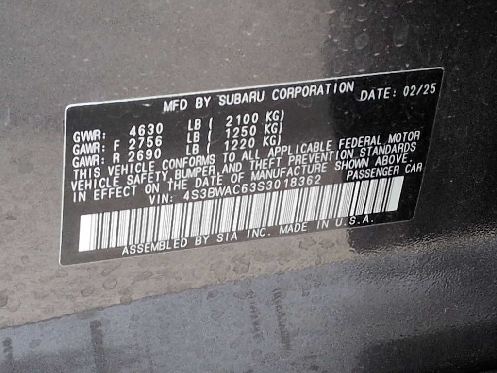 - 4S3BWAC63S3018362