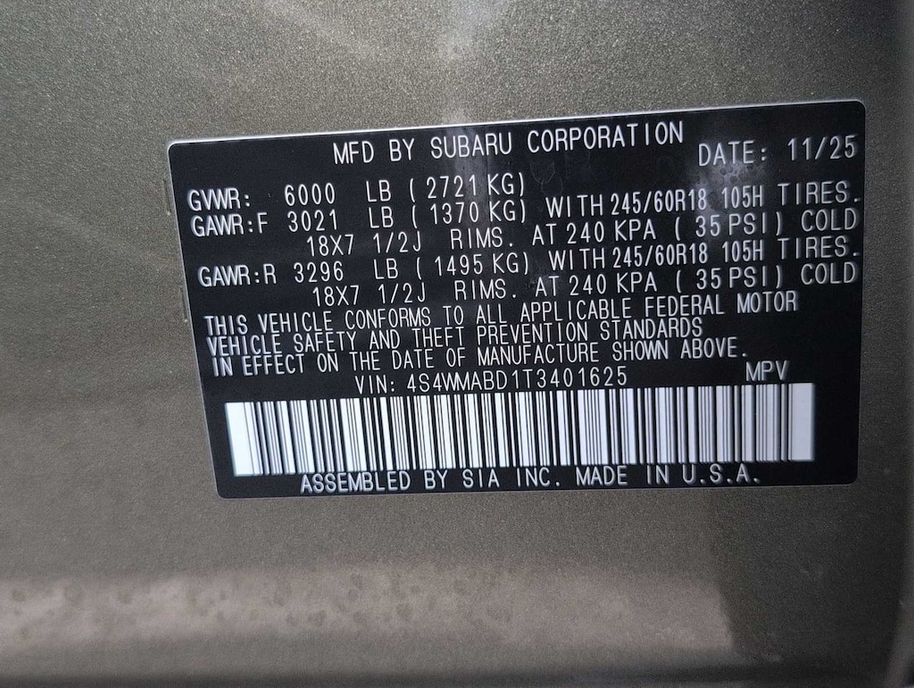 Awd, Eyesight, Remote Keyless Access w/ Push Button Start, Alloy wheels, Rear Vision Camera, Blind Spot Detection, Power Drivers Seat, Power Liftgate, 1 OWNER, NO ACCIDENTS, 3rd row seats: bench, AM/FM radio: SiriusXM with 360L, Apple CarPlay & Android Auto, Auto High-beam Headlights, Auto-dimming Rear-View mirror, Automatic temperature control, Delay-off headlights, Electronic Stability Control, Emergency communication system: MySubaru Companion (5-years free), Exterior Parking Camera Rear, Front dual zone A/C, Front fog lights, Front reading lights, Garage door transmitter: HomeLink, Heated door mirrors, Heated Front Bucket Seats, Illuminated entry, Leather Shift Knob, Leather steering wheel, Power door mirrors, Power Liftgate, Radio: Subaru 11.6 Multimedia Plus System, Standard Model, StarTex-Trimmed Upholstery, Tilt steering wheel, Wheels: 18 x 7.5 J Black Finish Aluminum Alloy. CARFAX One-Owner.