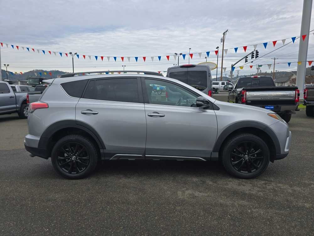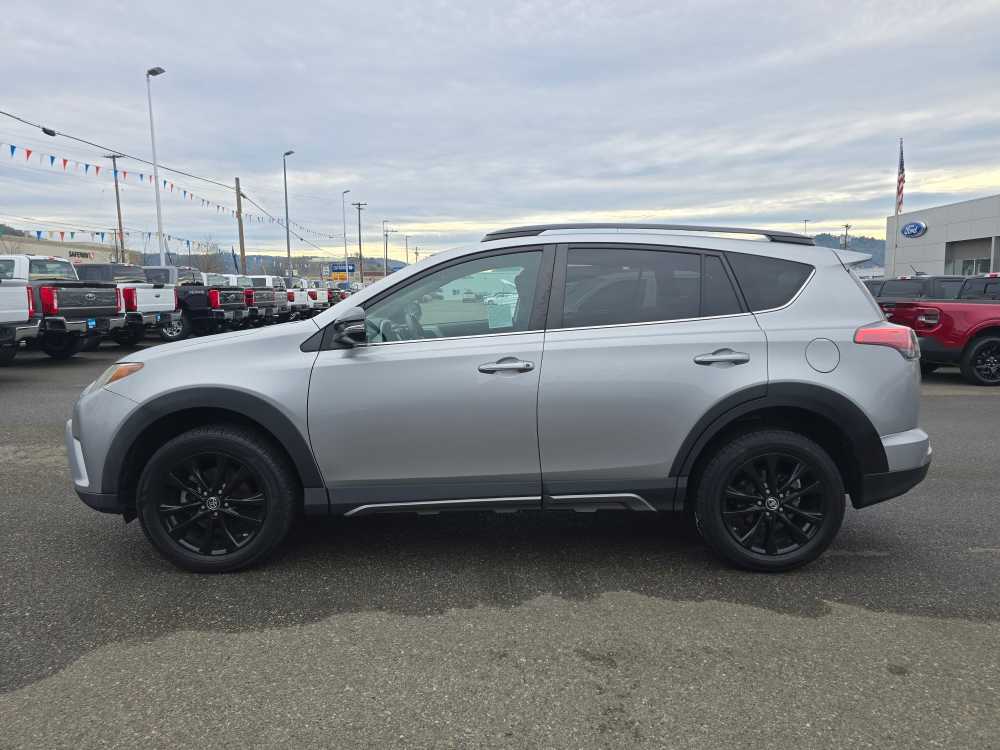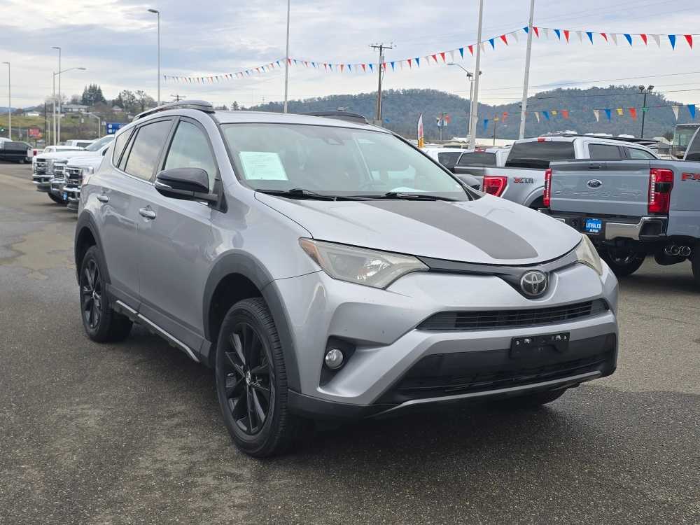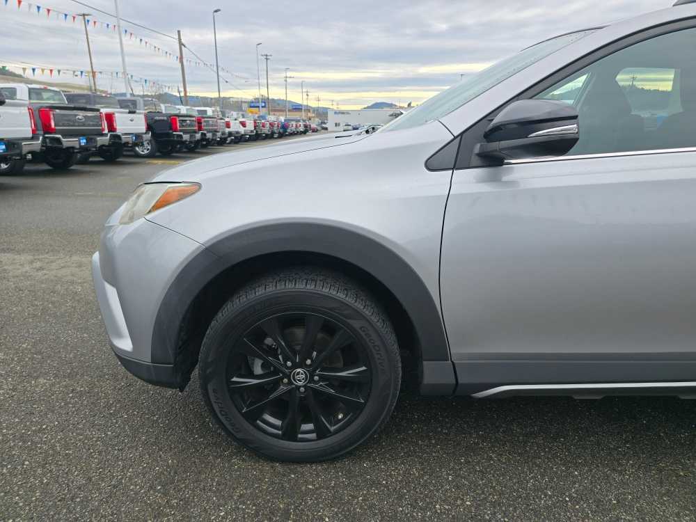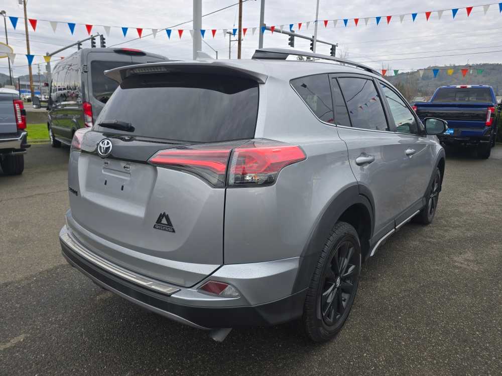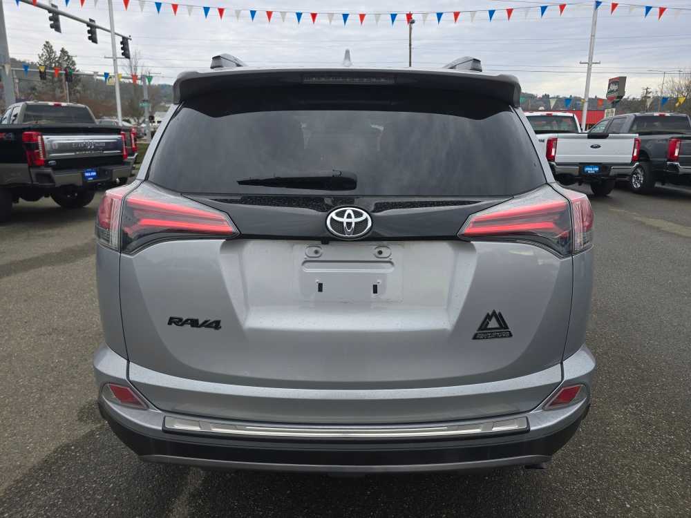 POWER PLUS EXTRA VALUE PACKAGE Roof Rails, Rear Backup Camera w/Monitor, Height-Adjustable Power Liftgate, jam protection, Smart Key System, With panic alarm, Blind Spot Monitor, rear cross traffic alert and lane change assist, Radio: Entune Display Audio, 6 speakers, 6.1 touch-screen display w/integrated backup camera display, AM/FM CD player, MP3/WMA playback, auxiliary audio jack, USB 2.0 port w/iPod connectivity, advanced voice recognition, hands-free phone capability, phone book access and music streaming w/Bluetooth®, Connected Navigation, Entune multimedia bundle w/SiriusXM All Satellite Radio, HD Radio, HD traffic and weather in major metro areas, Scout GPS link and Siri Eyes Free, ADVENTURE PACKAGE door scuff plate, All-Weather Mats, Black Automatic High Beam Headlamps, 2 Rear 120V/100W Power Outlets. 2018 Toyota RAV4 with Silver Sky Metallic exterior and Black interior features a 4 Cylinder Engine with 176 HP at 6000 RPM*. Non-Smoker vehicle