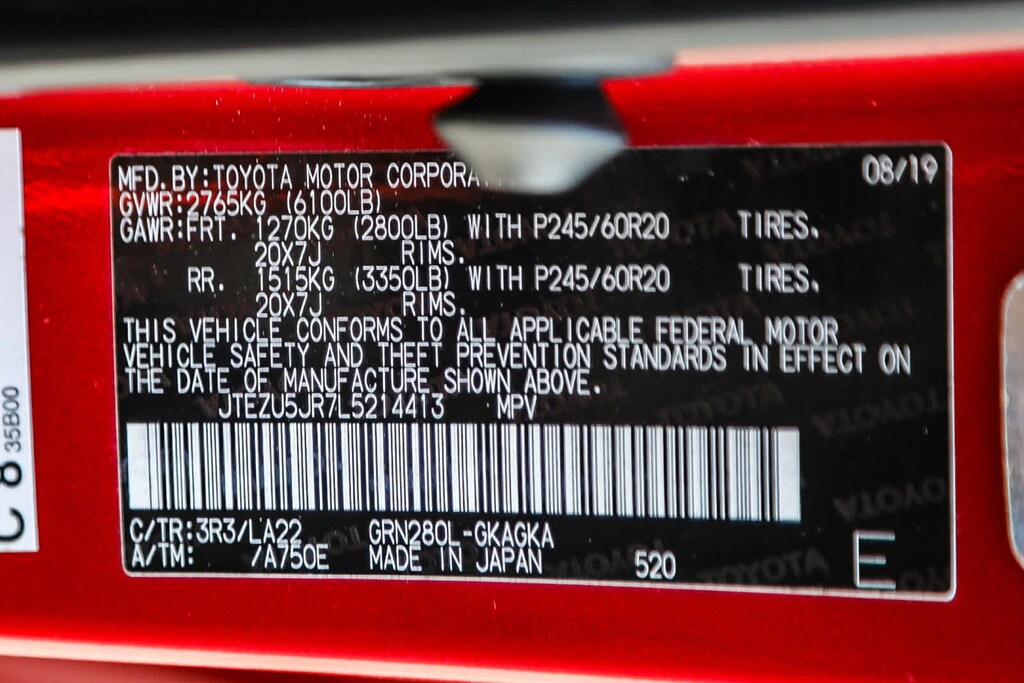 - Front tires: 245/60SR20.0