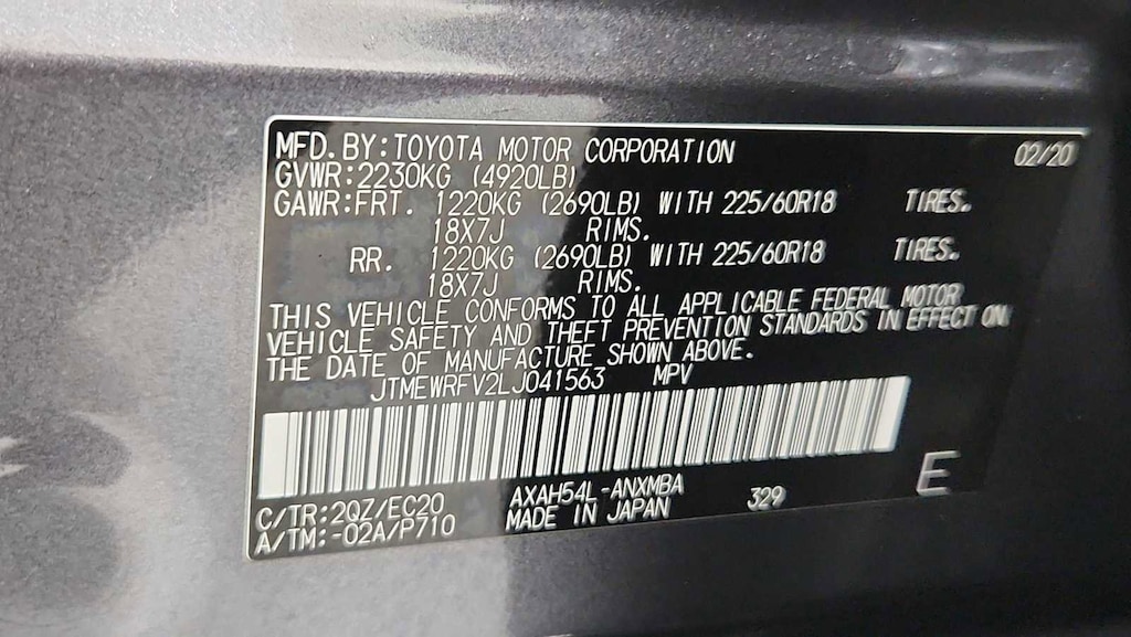 - Rear tires: 225/60HR18.0