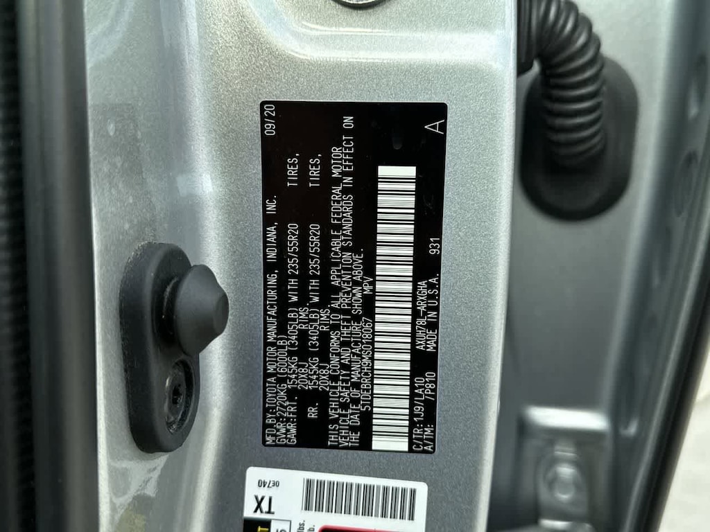 - Front tires: 235/55VR20.0