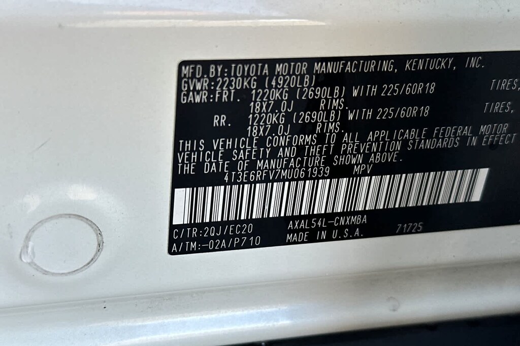 - 4T3E6RFV7MU061939