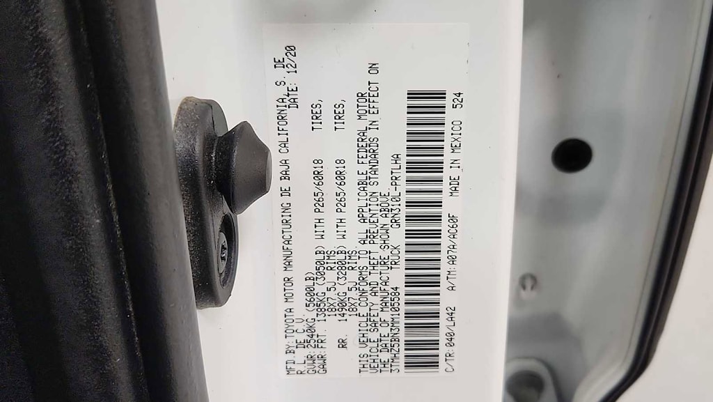 - Front tires: 265/60SR18.0