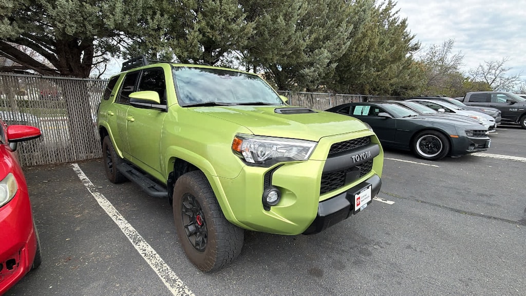 TRD PRO PACKAGE remote service package, upgraded speedometer and TRD lower door paint film, Roof Rack, TRD Pro Exhaust. Toyota TRD Pro with Lime Rush exterior and BLACK/GRAPHITE interior features a V6 Cylinder Engine with 270 HP at 5600 RPM*.