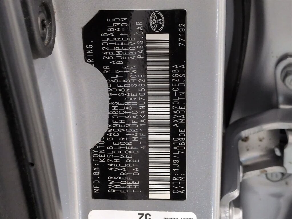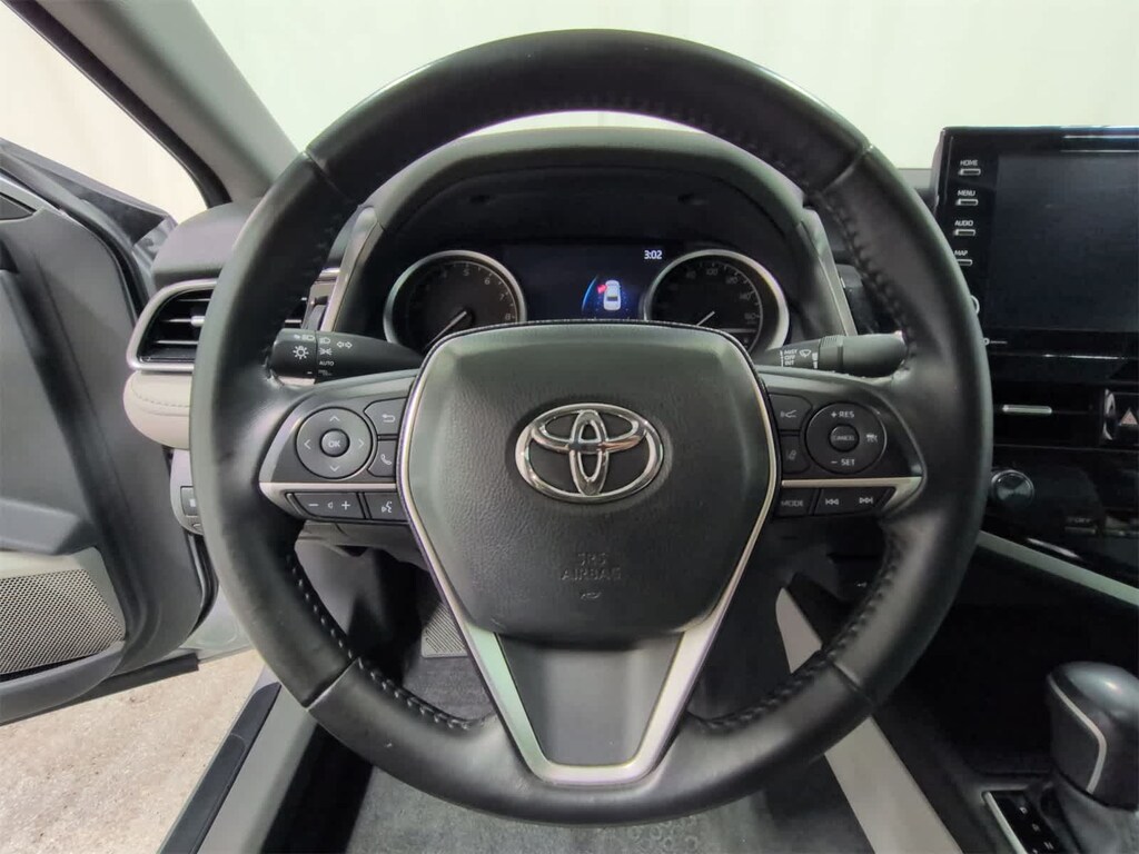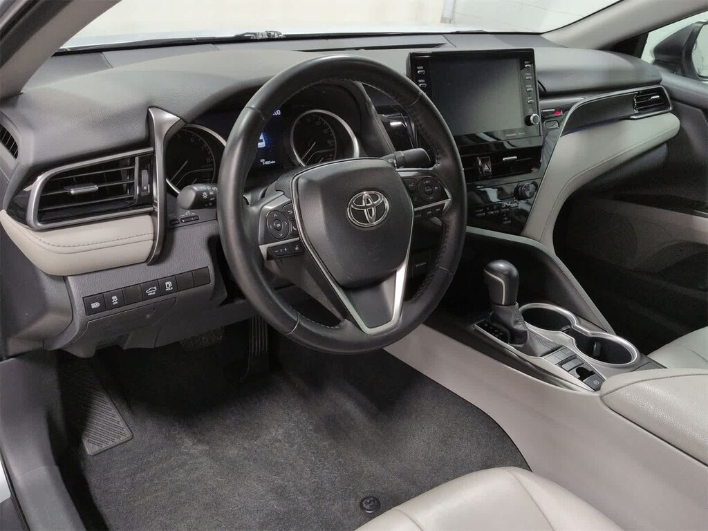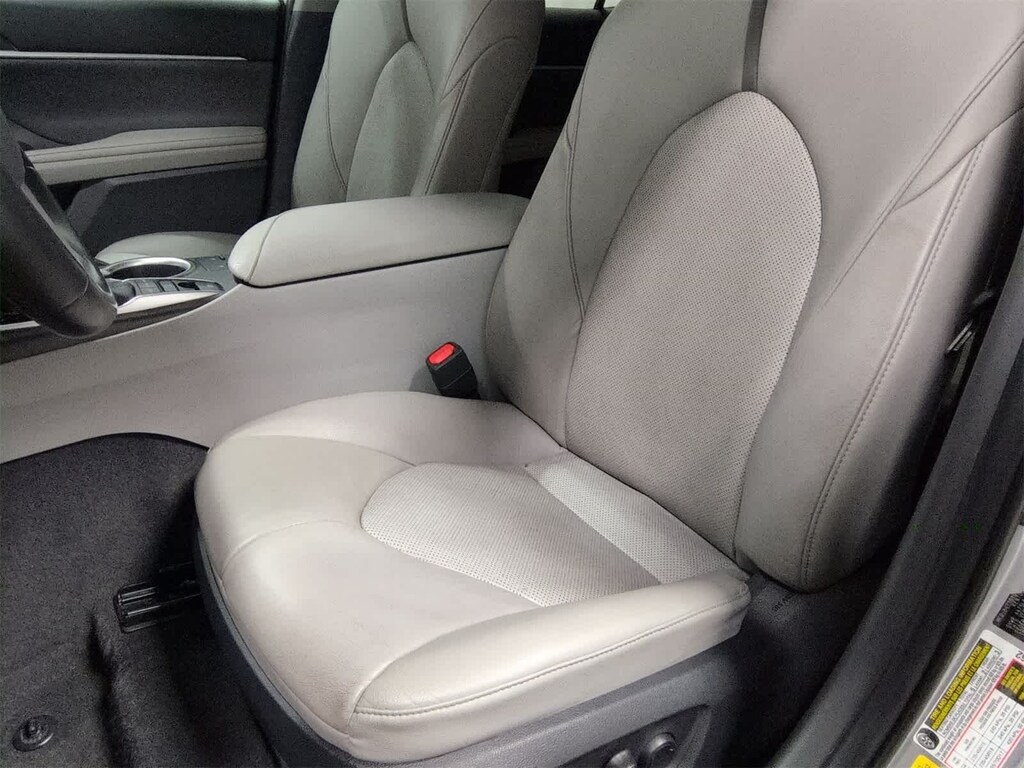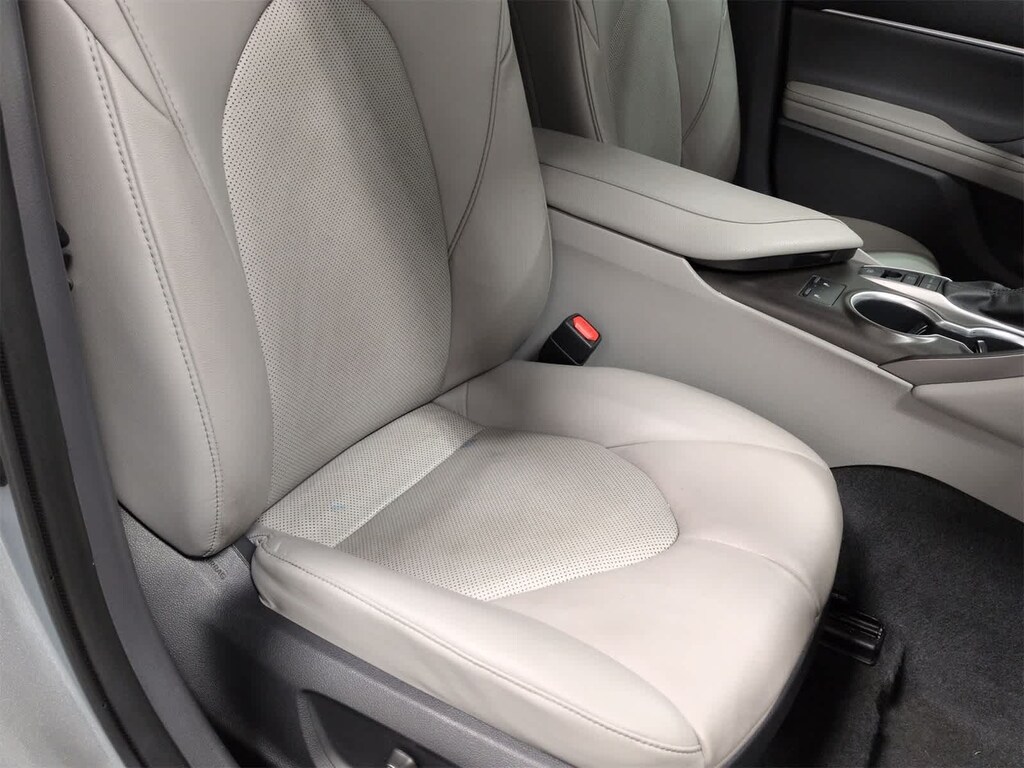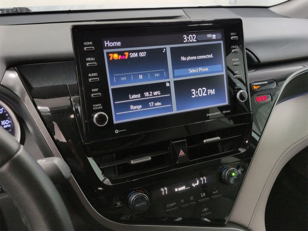 Camry XLE is nicely equipped with Certified Select Certified, Ash Leather, 4-Wheel Disc Brakes, 6 Speakers, ABS brakes, Air Conditioning, Alloy wheels, AM/FM radio: SiriusXM, Apple CarPlay/Android Auto, Auto High-beam Headlights, Auto-dimming Rear-View mirror, Automatic temperature control, Brake assist, Bumpers: body-color, Delay-off headlights, Driver door bin, Driver vanity mirror, Dual front impact airbags, Dual front side impact airbags, Electronic Stability Control, Emergency communication system: Safety Connect with 1-year trial, Exterior Parking Camera Rear, Four wheel independent suspension, Front anti-roll bar, Front Bucket Seats, Front Center Armrest, Front dual zone A/C, Front reading lights, Fully automatic headlights, Garage door transmitter: HomeLink, Heated door mirrors, Heated front seats, Illuminated entry, Knee airbag, Low tire pressure warning, Multi-Stage Heated Front Bucket Seats, Occupant sensing airbag, Outside temperature display, Overhead airbag, Overhead console, Panic alarm, Passenger door bin, Passenger vanity mirror, Perforated Leather Seat Trim, Power door mirrors, Power driver seat, Power passenger seat, Power steering, Power windows, Radio data system, Radio: AM/FM/HD Audio Plus, Rear anti-roll bar, Rear reading lights, Rear seat center armrest, Rear side impact airbag, Rear window defroster, Remote keyless entry, Security system, Speed control, Speed-sensing steering, Split folding rear seat, Steering wheel mounted audio controls, Tachometer, Telescoping steering wheel, Tilt steering wheel, Traction control, Trip computer, Turn signal indicator mirrors, Variably intermittent wipers, and Wheels: 8.0J x 18 Dark Gray Machined-Finish Alloy.
