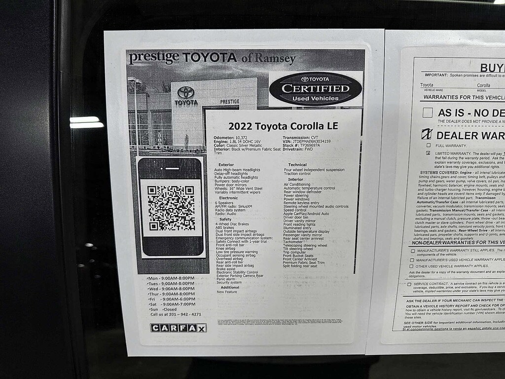 This 2022 Toyota Corolla LE will not make it to the weekend!! CALL NOW to reserve your test drive!! (844) 838-7075 Please Visit www.PrestigeToyota.com for further details. Price does not include licensing costs, registration fees, taxes and dealer doc fee of $999 which are to be paid by the consumer.
