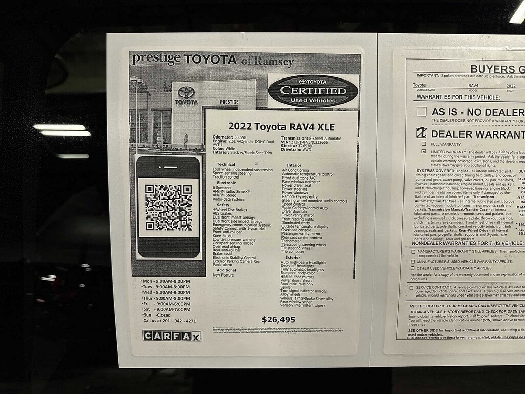 This 2022 Toyota RAV4 XLE will not make it to the weekend!! CALL NOW to reserve your test drive!! (844) 838-7075 Please Visit www.PrestigeToyota.com for further details. Price does not include licensing costs, registration fees, taxes and dealer doc fee of $999 which are to be paid by the consumer.