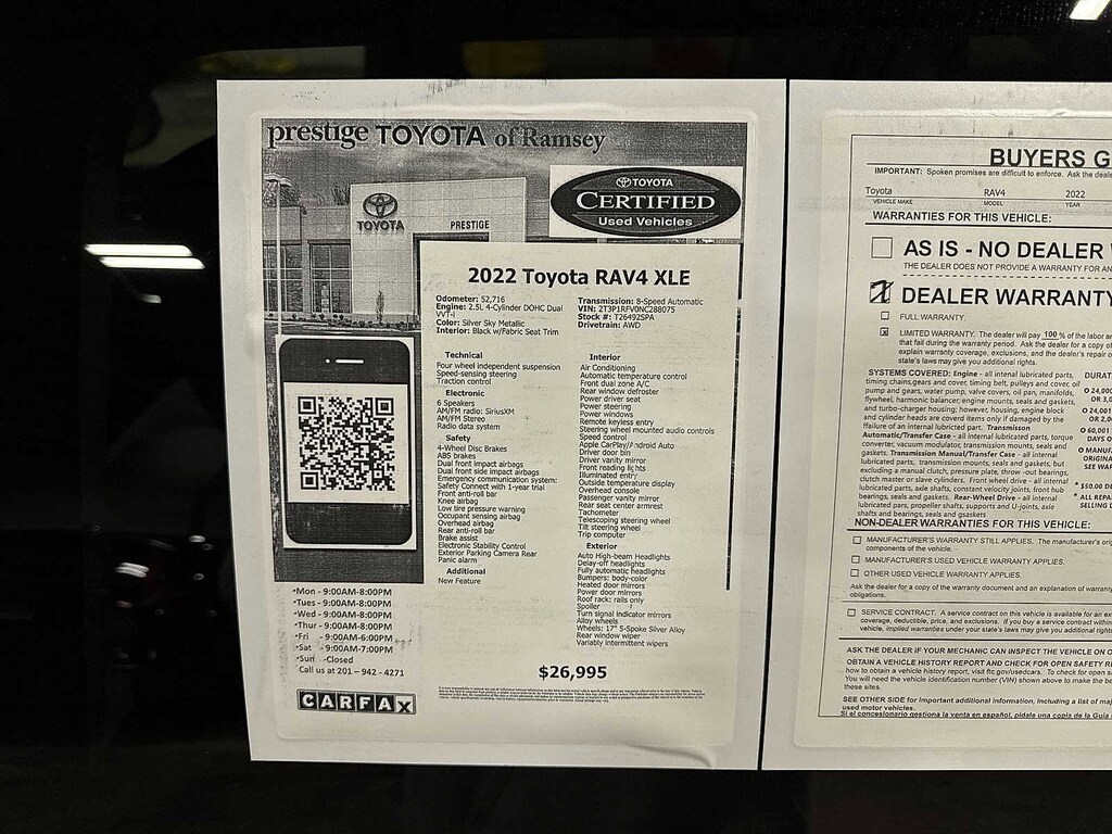 This 2022 Toyota RAV4 XLE will not make it to the weekend!! CALL NOW to reserve your test drive!! (844) 838-7075 Please Visit www.PrestigeToyota.com for further details. Price does not include licensing costs, registration fees, taxes and dealer doc fee of $999 which are to be paid by the consumer.