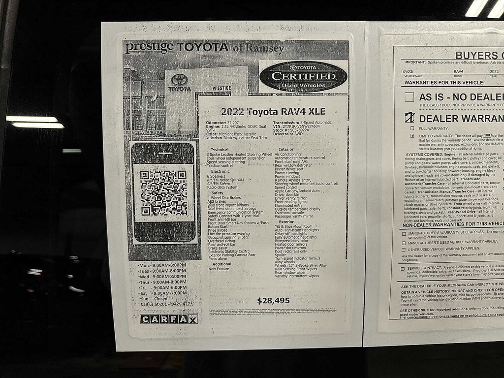 RAV4 XLE, 4D Sport Utility, 2.5L 4-Cylinder DOHC Dual VVT-i, 8-Speed Automatic, AWD, Midnight Black Metallic, 3 Spoke Leather Heated Steering Wheel, Convenience Package, Front Door Smart Key System w/Push Button Start, Front Seat Heating, Rain Sensing Front Wipers, Tilt & Slide Moon Roof, XLE Grade Weather Package. CARFAX One-Owner. Certified. Midnight Black Metallic 2022 Toyota RAV4 XLE AWD 8-Speed Automatic 2.5L 4-Cylinder DOHC Dual VVT-i