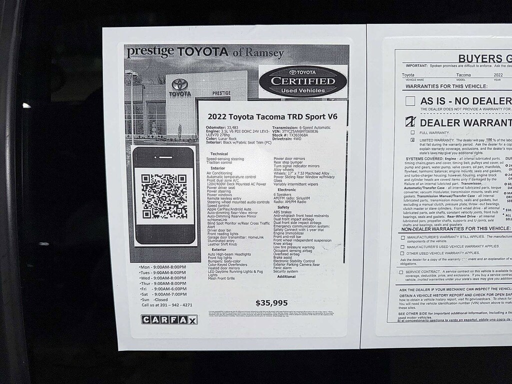 This 2022 Toyota Tacoma TRD Sport will not make it to the weekend!! CALL NOW to reserve your test drive!! (844) 838-7075 Please Visit www.PrestigeToyota.com for further details. Price does not include licensing costs, registration fees, taxes and dealer doc fee of $999 which are to be paid by the consumer.