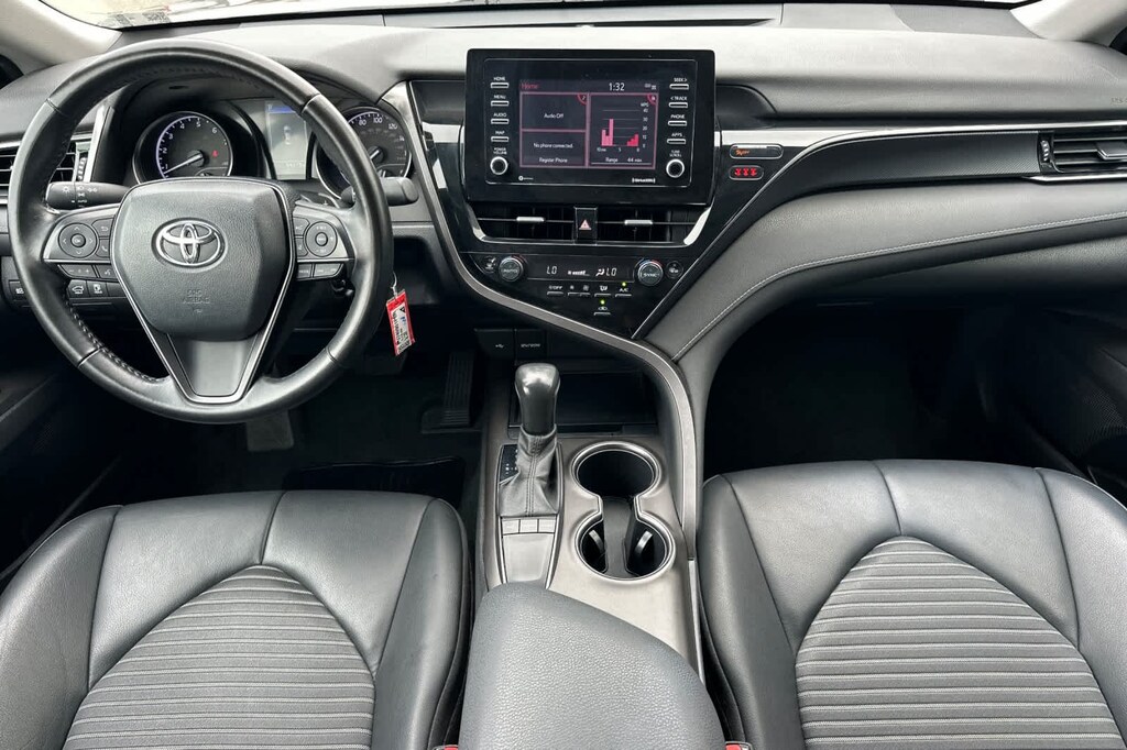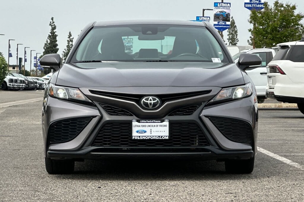 Lithia Ford and Lincoln of Fresno is pleased to offer this Predawn Gray Mica 2023 Toyota Camry for purchase, this vehicle is well equipped with many features including: Toyota Certified, Black w/Perforated Leather Seat Trim, 4-Wheel Disc Brakes, 6 Speakers, 8.0J x 18 Alloy Wheels, ABS brakes, Air Conditioning, Alloy wheels, AM/FM radio: SiriusXM, Apple CarPlay/Android Auto, Auto High-beam Headlights, Automatic temperature control, Brake assist, Bumpers: body-color, Delay-off headlights, Driver door bin, Driver vanity mirror, Dual front impact airbags, Dual front side impact airbags, Electronic Stability Control, Emergency communication system: Safety Connect (1-year trial), Exterior Parking Camera Rear, Four wheel independent suspension, Front anti-roll bar, Front Bucket Seats, Front Center Armrest, Front dual zone A/C, Front reading lights, Fully automatic headlights, Heated door mirrors, Illuminated entry, Knee airbag, Leather steering wheel, Low tire pressure warning, Occupant sensing airbag, Outside temperature display, Overhead airbag, Overhead console, Panic alarm, Passenger door bin, Passenger vanity mirror, Power door mirrors, Power driver seat, Power steering, Power windows, Radio data system, Radio: Audio, Rear anti-roll bar, Rear seat center armrest, Rear side impact airbag, Rear window defroster, Remote keyless entry, Security system, Speed control, Speed-sensing steering, Split folding rear seat, Spoiler, Sport SofTex Seat Trim w/Fabric Inserts, Steering wheel mounted audio controls, Tachometer, Telescoping steering wheel, Tilt steering wheel, Traction control, Trip computer, Turn signal indicator mirrors, and Variably intermittent wipers. FWD 2.5L I4 DOHC 16V 8-Speed Automatic