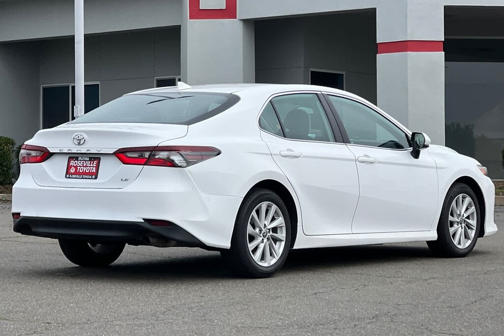 Certified. White 2023 Toyota Camry LE FWD 8-Speed Automatic 2.5L I4 DOHC 16V Cloth.