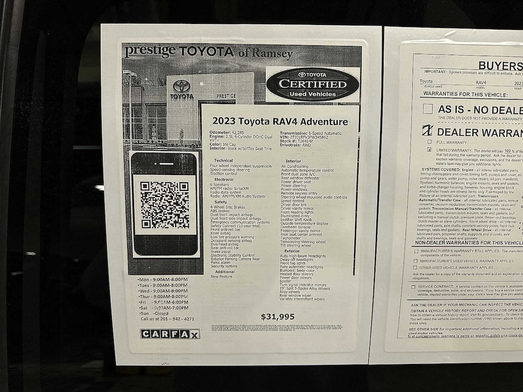 This 2023 Toyota RAV4 Adventure will not make it to the weekend!! CALL NOW to reserve your test drive!! (844) 838-7075 Please Visit www.PrestigeToyota.com for further details. Price does not include licensing costs, registration fees, taxes and dealer doc fee of $999 which are to be paid by the consumer.