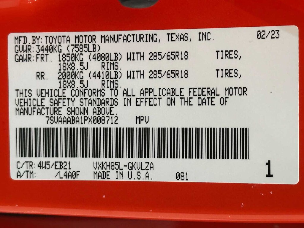 - Rear tires: 285/65HR18.0