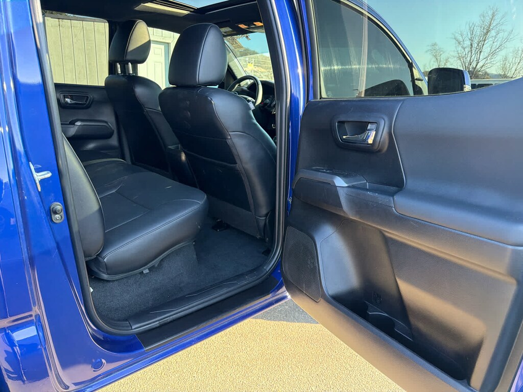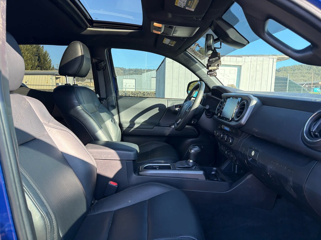 TRD PREMIUM SPORT PACKAGE leather shift lever and knob and Sport graphic, Heated Front Seats, Auto Headlights, Radio: Premium JBL Audio w/Dynamic Navigation, Clari-Fi, 6 speakers, subwoofer and amplifier, 8 touchscreen, HD Radio, Dynamic Navigation, Dynamic POI Search, Dynamic Voice Recognition, hands-free phone capability and music streaming via Bluetooth® wireless technology, Android Auto®, Apple CarPlay® and Amazon Alexa compatible, SiriusXM w/3-month all access trial and Connected Services (Safety Connect, Service Connect w/10-year trial, Remote Connect, Wi-Fi Connect w/up to 2 GB within 3-month trial and Destination Assist ), See toyota.com/audio-multimedia for details, Power Tilt/Slide Moonroof, sliding sunshade, Auto-Dimming, TECHNOLOGY PACKAGE Rear Parking Assist Sonar, Blind Spot Monitor w/Rear Cross Traffic Alert, Lane Change Assist, Mesh Front Grille, LED HEADLIGHTS W/BLACK BEZEL LED FOG LIGHTS LED daytime running lights, ALL WEATHER FLOOR LINER & DOOR SILL PROTECTOR (TMS). 2023 Toyota Tacoma with Blue Crush Metallic exterior and Black/Gun Metal interior features a V6 Cylinder Engine with 278 HP at 6000 RPM*. Non-Smoker vehicle