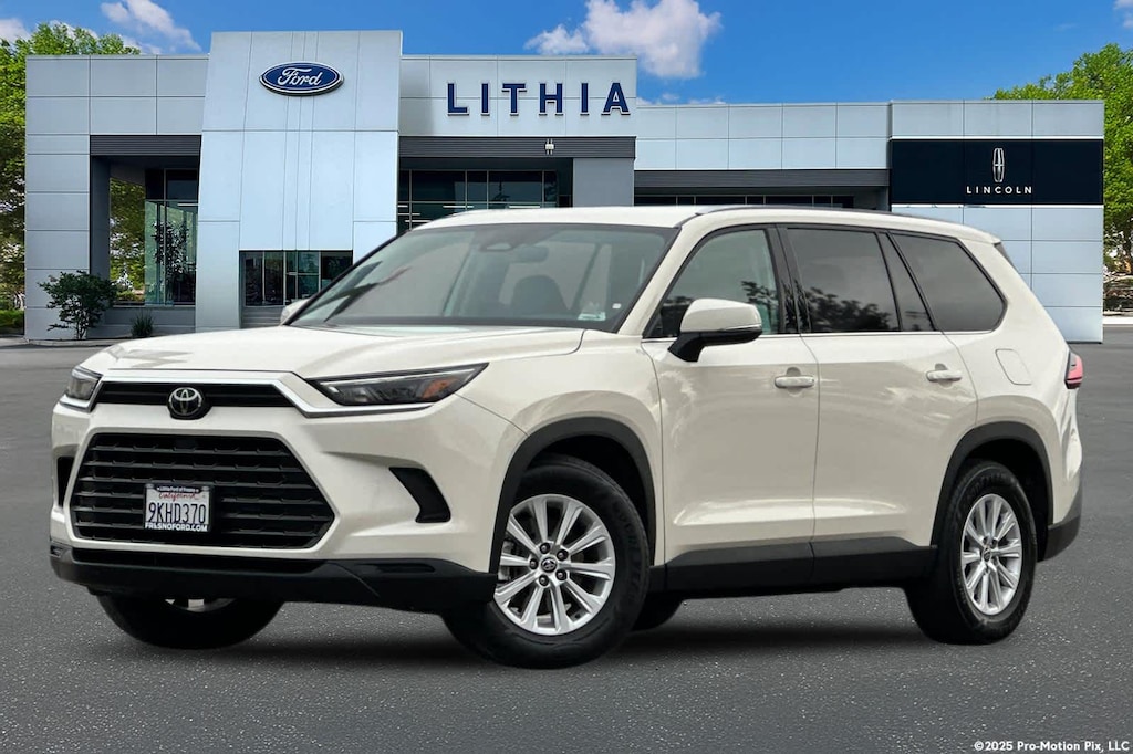 Lithia Ford and Lincoln of Fresno is pleased to offer this Wind Chill Pearl 2024 Toyota Grand Highlander for purchase, this vehicle is well equipped with many features including: Toyota Certified, 6 Speakers, AM/FM radio: SiriusXM, Navigation system: Drive Connect Cloud Navigation (1-year trial subscription), Radio: 12.3 Toyota Audio Multimedia, 18 Aluminum Alloy Wheels, 3.33 Axle Ratio, 3rd row seats: split-bench, 4-Wheel Disc Brakes, ABS brakes, Air Conditioning, Alloy wheels, Apple CarPlay/Android Auto, Auto High-beam Headlights, Auto-dimming Rear-View mirror, Automatic temperature control, Brake assist, Bumpers: body-color, Delay-off headlights, Driver door bin, Driver vanity mirror, Dual front impact airbags, Dual front side impact airbags, Electronic Stability Control, Emergency communication system: Safety Connect (up to 10-year trial subscription), Exterior Parking Camera Rear, Four wheel independent suspension, Front anti-roll bar, Front Bucket Seats, Front Center Armrest, Front dual zone A/C, Front reading lights, Fully automatic headlights, Garage door transmitter: HomeLink, Heated door mirrors, Heated Front Seats, Heated front seats, Illuminated entry, Knee airbag, Leather Shift Knob, Leather steering wheel, Low tire pressure warning, Occupant sensing airbag, Outside temperature display, Overhead airbag, Overhead console, Panic alarm, Passenger door bin, Passenger vanity mirror, Power door mirrors, Power driver seat, Power Liftgate, Power passenger seat, Power steering, Power windows, Rear air conditioning, Rear anti-roll bar, Rear reading lights, Rear window defroster, Rear window wiper, Reclining 3rd row seat, Remote keyless entry, Security system, SofTex Seat Trim, Speed control, Speed-sensing steering, Split folding rear seat, Spoiler, Steering wheel mounted audio controls, Tachometer, Telescoping steering wheel, Tilt steering wheel, Traction control, Trip computer, Turn signal indicator mirrors, and Variably intermittent wipers. AWD 2.4L 4-Cylinder 8-Speed Automatic