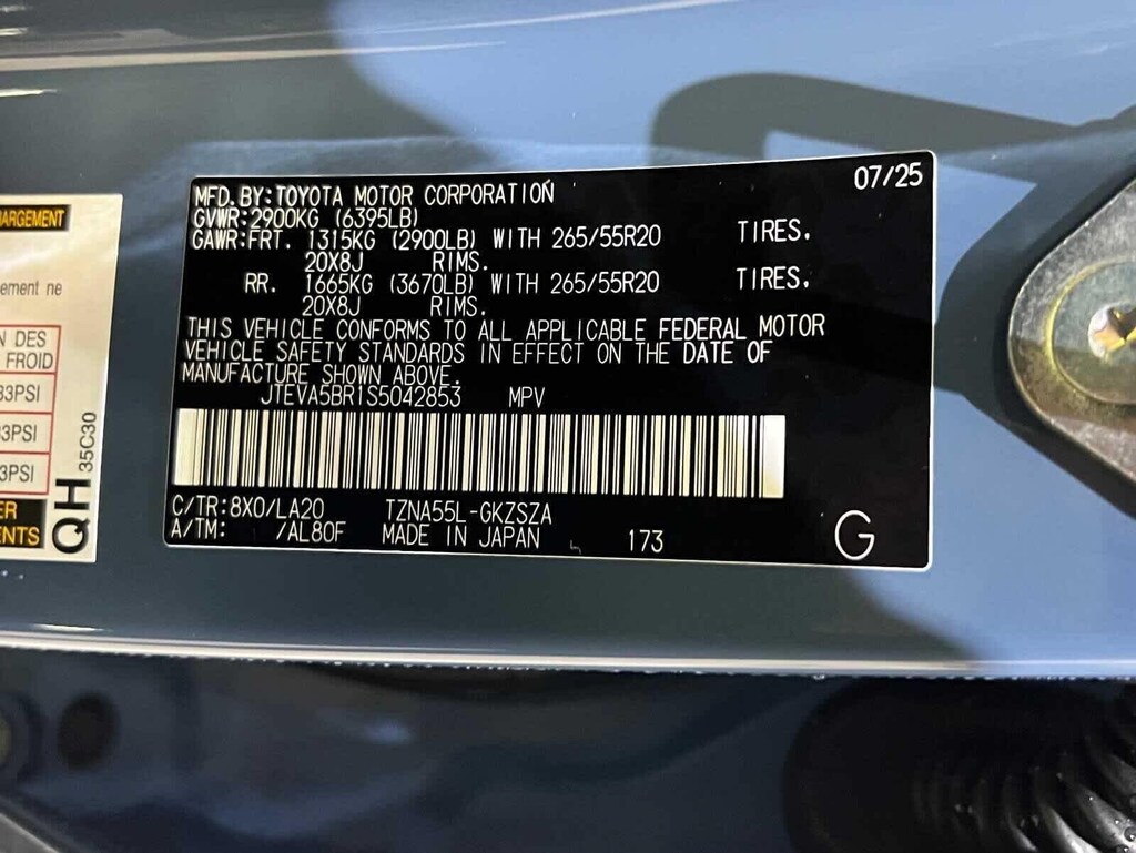 - Front tires: 265/55SR20.0
