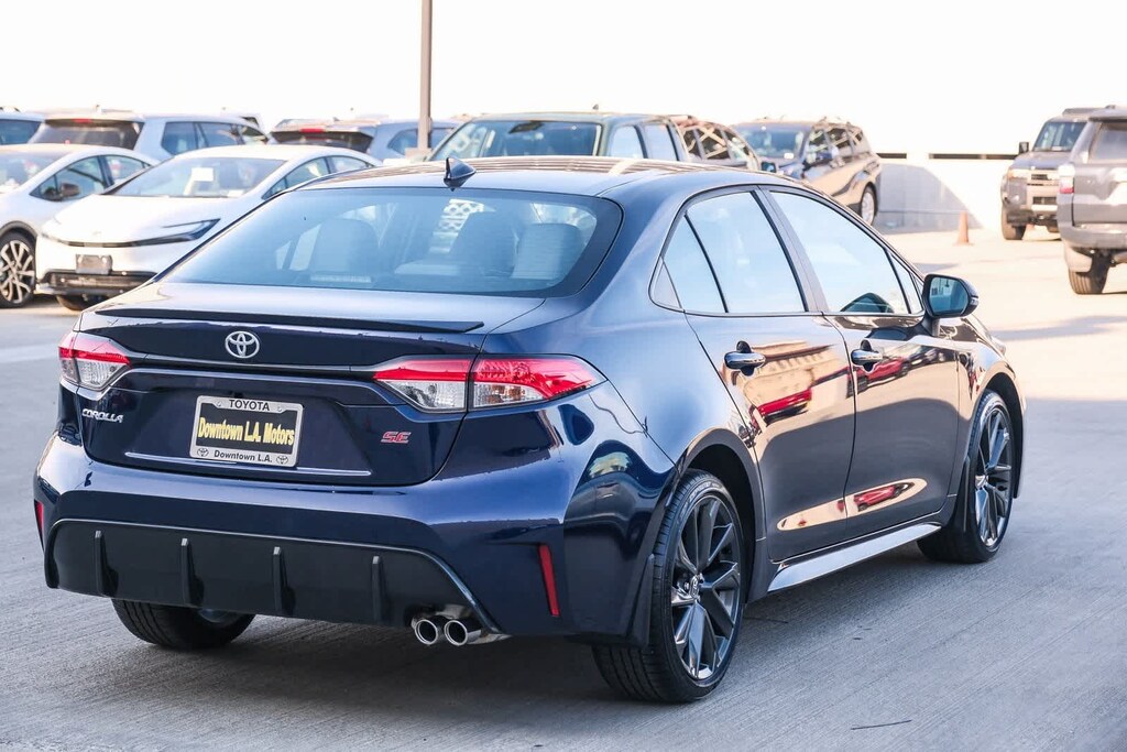 WELCOME TO TOYOTA OF DOWNTOWN LA... LOW MILES. Certified. 4.49% APR FINANCING FOR 72 MONTHS ON APPROVED CREDIT. CARFAX One-Owner. 2025 Toyota Corolla SE Blueprint FWD CVT 2.0L I4 DOHC 16V 6 Speakers, All Weather Floor Liner Package: Tub Style (TMS), Apple CarPlay/Android Auto, Automatic temperature control, Blind Spot Monitor, Brake assist, Color-Keyed Heated Power Outside Mirrors, Convenience Package, Delay-off headlights, Electronic Stability Control, Exterior Parking Camera Rear, Front Sport Seats, Fully automatic headlights, Illuminated entry, Leather steering wheel, Radio data system, Radio: 8 Toyota Audio Multimedia, Rear window defroster, Remote keyless entry, Speed control, Split folding rear seat, Spoiler, Steering wheel mounted audio controls, Turn signal indicator mirrors, Wheels: 18 Alloy w/Graphite-Colored Finish. Odometer is 7046 miles below market average! 31/40 City/Highway MPG Clean CARFAX.