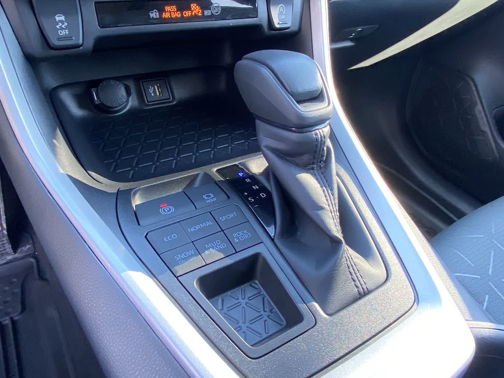 - Center console with covered storage compartment, two cup holders, drive mode, Multi-Terrain Select (MTS), Electric Parking Brake (EPB) and automatic Brake Hold controls, and front storage tray