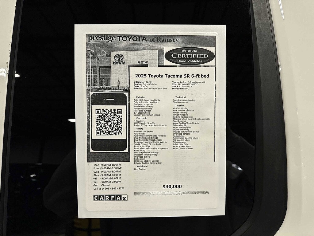 Tacoma SR 6-ft bed, Xtra Cab, 2.4L 4-Cylinder, 8-Speed Automatic, RWD, Ice Cap. Certified. Ice Cap 2025 Toyota Tacoma SR 6-ft bed RWD 8-Speed Automatic 2.4L 4-Cylinder
