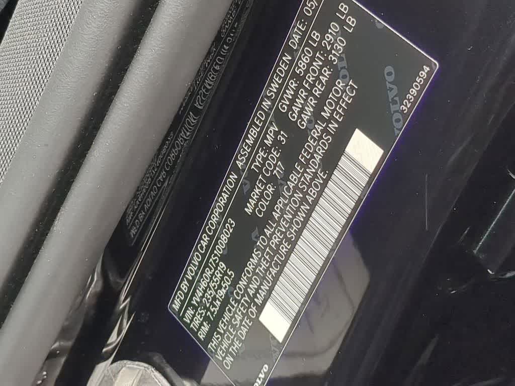 2.0L I4 Hybrid Turbocharged DOHC 16V LEV3-SULEV30, 4-Wheel Disc Brakes, ABS brakes, Alloy wheels, Anti-whiplash front head restraints, Dual front impact airbags, Dual front side impact airbags, Electronic Stability Control, Front anti-roll bar, Front dual zone A/C, Heated door mirrors, Heated Front Seats, Heated front seats, Illuminated entry, Low tire pressure warning, Occupant sensing airbag, Overhead airbag, Power Liftgate, Power moonroof, Rear anti-roll bar, Remote keyless entry, Traction control, 11 Speakers, Air Conditioning, AM/FM radio: SiriusXM, Apple CarPlay, Auto High-beam Headlights, Auto-dimming door mirrors, Auto-dimming Rear-View mirror, Automatic temperature control, Brake assist, Bumpers: body-color, Delay-off headlights, Driver door bin, Driver vanity mirror, Emergency communication system: Volvo Cars App w/4 Year Subscription, Exterior Parking Camera Rear, Four wheel independent suspension, Front Bucket Seats, Front Center Armrest, Front reading lights, Fully automatic headlights, Knee airbag, Leather Shift Knob, Leatherette Upholstery, Memory seat, Outside temperature display, Panic alarm, Passenger door bin, Passenger vanity mirror, Power door mirrors, Power driver seat, Power passenger seat, Power steering, Power windows, Radio data system, Radio: High Performance Audio System, Rain sensing wipers, Rear fog lights, Rear reading lights, Rear seat center armrest, Rear window defroster, Rear window wiper, Roof rack: rails only, Security system, Speed control, Split folding rear seat, Spoiler, Steering wheel mounted audio controls, Tachometer, Telescoping steering wheel, Tilt steering wheel, Trip computer, Turn signal indicator mirrors, Variably intermittent wipers, and Wheels: 18 5-Double Spoke Black Diamond Cut Alloy Bluetooth Backup Camera Price does not include licensing costs, registration fees, taxes and dealer doc fee of $260, which are to be paid by the consumer. **DEALER INSPECTED**, Remote Start, Bluetooth, Rear Back-up Camera, 2.0L I4 Hybrid Turbocharged DOHC 16V LEV3-SULEV30, 4-Wheel Disc Brakes, ABS brakes, Alloy wheels, Anti-whiplash front head restraints, Dual front impact airbags, Dual front side impact airbags, Electronic Stability Control, Front anti-roll bar, Front dual zone A/C, Heated door mirrors, Heated Front Seats, Heated front seats, Illuminated entry, Low tire pressure warning, Occupant sensing airbag, Overhead airbag, Power Liftgate, Power moonroof, Rear anti-roll bar, Remote keyless entry, Traction control. Onyx Black Metallic 2025 Volvo XC60 Plug-In Hybrid AWD Automatic with Geartronic 2.0L I4 Hybrid Turbocharged DOHC 16V LEV3-SULEV30