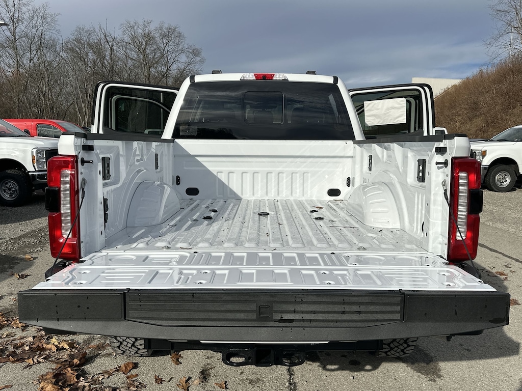 XLT PREMIUM PACKAGE Electrochromic Self-Dimming Rearview Mirror, PowerScope Trailer Tow Mirrors w/Heat, power-folding w/Autofold, telescoping, power glass, turn signal, high intensity LED security approach lamps and utility lighting system (LED side-mirror spotlights), SiriusXM w/360L (3-Year Plan), Also referred to as an extended service subscription plan by SiriusXM, is included w/your newly purchased or leased vehicle will stop at the end of the subscription period unless you decide to continue service, Plan is non-transferable and non-refundable, If you do not wish to enjoy your subscription, you can cancel by calling the number below, All SiriusXM services require a subscription, each sold separately by SiriusXM after the service term, Service subject to the SiriusXM customer, TREMOR OFF-ROAD PACKAGE unique front springs - ride height increase, rear electronic locking differential, front limited slip differential, performance front and rear shock absorbers, unique front air dams w/approach angle improvement, transfer case and axle water fording vent tubes, rock crawl mode, trail control mode and trail turn assist, Tremor Off-Road Decal, Transfer Case & Fuel Tank Skid Plates, Tires: LT285/75R18E BSW Automatic Transmission, Off-road, LT285/75R18E BSW Spare Tire, Textured Matte Finish Off-Road Running Boards, Conventional Road Spare Wheel, Wheels: 18 Ebony Black Machined & Painted Aluminum, ENGINE: 7.3L 2V DEVCT NA PFI V8 GAS, TWIN PANEL POWER MOONROOF map lights and moonroof switches, TAILGATE STEP & HANDLE, TRANSMISSION: TORQSHIFT 10-SPEED AUTOMATIC SelectShift and selectable drive modes: normal, eco, slippery roads, tow/haul and off-road. Privacy Glass, Child Safety Locks, Electronic Stability Control, Brake Assist, 4-Wheel ABS.