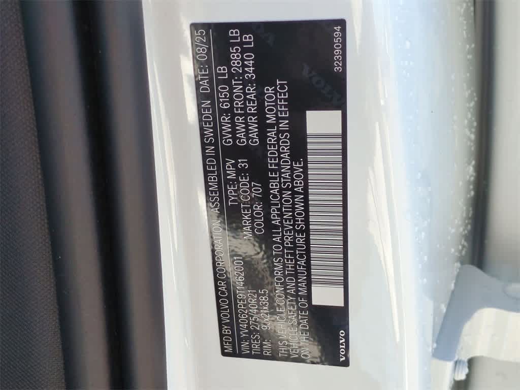 Protection Package (All-Weather Floor Mats, Bumper Cover, Cargo Tray, First Aid Kit, and Wheel Locks), AWD, Cardamom Premium Synthetic, 10 Speakers, 3rd row seats: bucket, 4-Wheel Disc Brakes, ABS brakes, Air Conditioning, Alloy wheels, AM/FM radio: SiriusXM, Anti-whiplash front head restraints, Apple CarPlay, Auto High-beam Headlights, Auto-dimming door mirrors, Auto-dimming Rear-View mirror, Automatic temperature control, Brake assist, Bumpers: body-color, Delay-off headlights, Driver door bin, Driver vanity mirror, Dual front impact airbags, Dual front side impact airbags, Electronic Stability Control, Emergency communication system: Volvo Cars App w/4 Year Subscription, Exterior Parking Camera Rear, Four wheel independent suspension, Front anti-roll bar, Front Bucket Seats, Front Center Armrest w/Storage, Front dual zone A/C, Front reading lights, Fully automatic headlights, Garage door transmitter: HomeLink, Genuine wood dashboard insert, Genuine wood door panel insert, harman/kardon Premium Sound, Headlight cleaning, Heated door mirrors, Heated Front Bucket Seats, Heated front seats, Heated rear seats, Heated steering wheel, Illuminated entry, Integrated rear child seats, Knee airbag, Low tire pressure warning, Memory seat, Navigation System, Nordico Upholstery, Occupant sensing airbag, Outside temperature display, Overhead airbag, Panic alarm, Passenger door bin, Passenger vanity mirror, Power door mirrors, Power driver seat, Power Liftgate, Power moonroof, Power passenger seat, Power steering, Power windows, Radio data system, Radio: High Performance Audio System, Rain sensing wipers, Rear air conditioning, Rear anti-roll bar, Rear dual zone A/C, Rear fog lights, Rear reading lights, Rear seat center armrest, Rear window defroster, Rear window wiper, Remote keyless entry, Security system, Speed control, Speed-sensing steering, Split folding rear seat, Spoiler, Steering wheel mounted audio controls, Tachometer, Telescoping steering wheel, Traction control, Trip computer, Turn signal indicator mirrors, Variably intermittent wipers, and Wheels: 21 5-Multi Spoke Black Diamond Cut Alloy Bluetooth Backup Camera Price does not include licensing costs, registration fees, taxes and dealer doc fee of $280, which are to be paid by the consumer. **DEALER INSPECTED**, Remote Start, Bluetooth, Rear Back-up Camera, AWD, Cardamom Premium Synthetic. Crystal White Pearl 2026 Volvo XC90 Plus AWD Automatic with Geartronic 2.0L I4 Turbocharged DOHC 16V LEV3-ULEV70